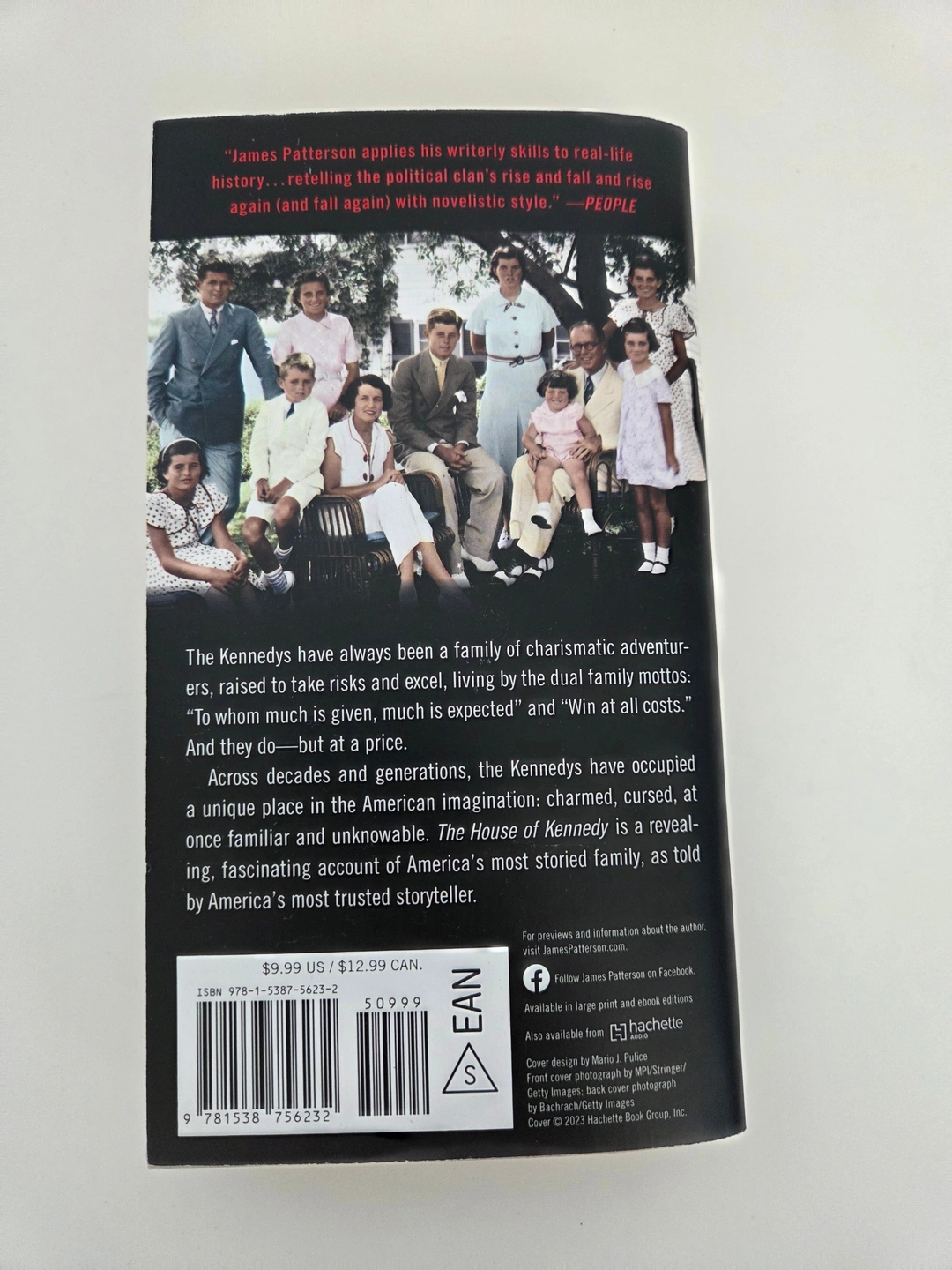 New York Times bestseller by James Patterson with Cynthia Fagen. Nonfiction biography of the Kennedy family from a trusted storyteller. Grand Central Publishing – Hachette Book Group. Updated trade paperback edition: March 2021; first oversize mass market edition: June 2023. Condition: gently used paperback – clean copy, tight spine, minimal shelf wear from careful reading.