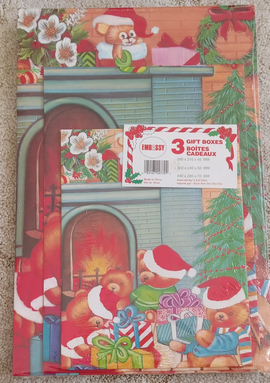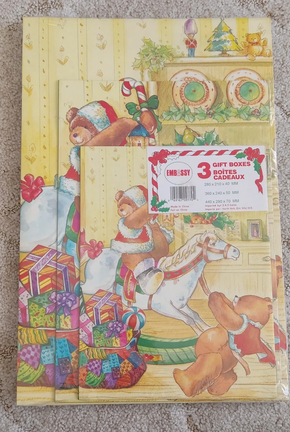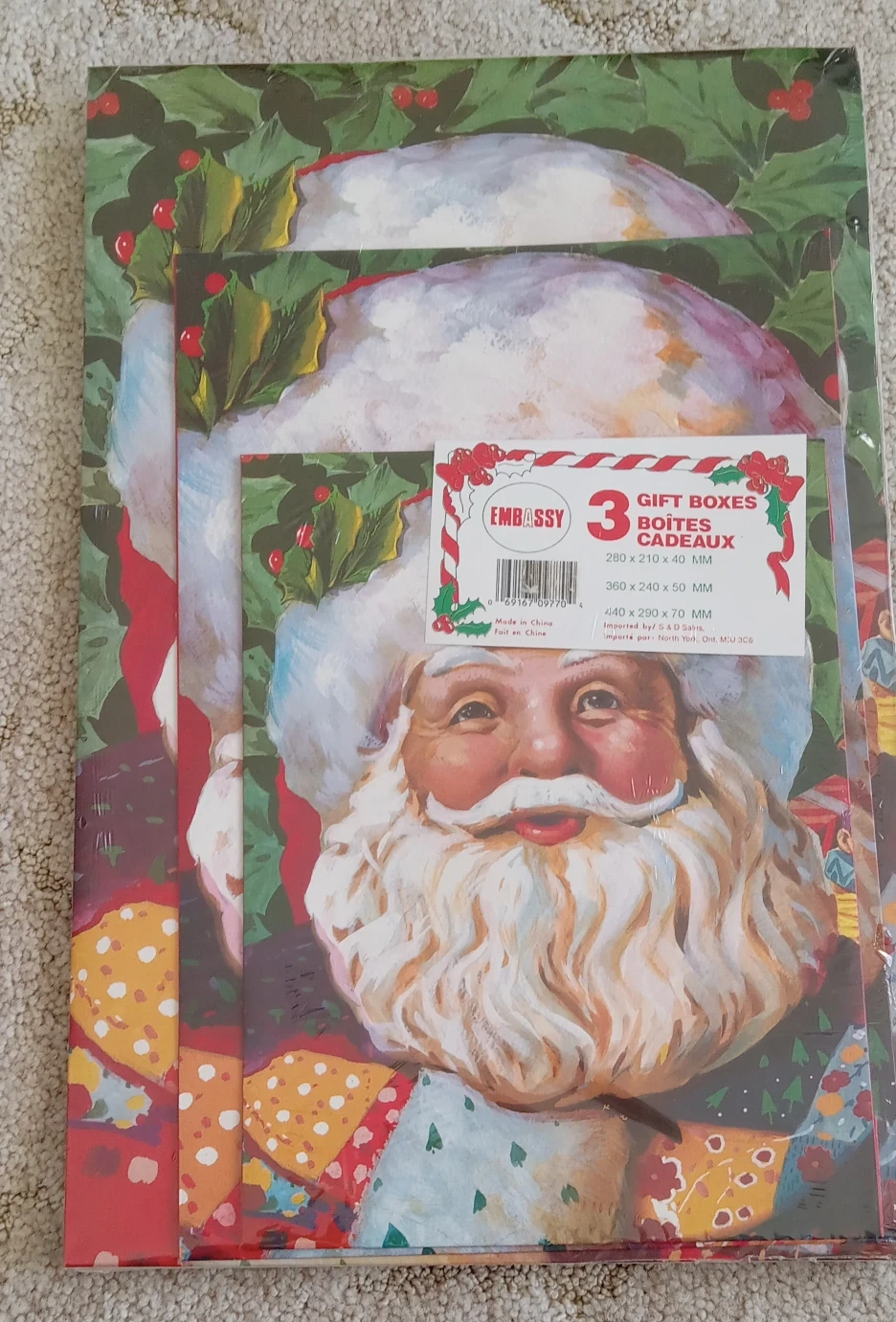 Here's a set of three Embassy gift boxes, still new and sealed in their original packaging! The sizes are: