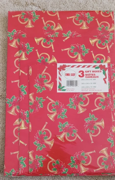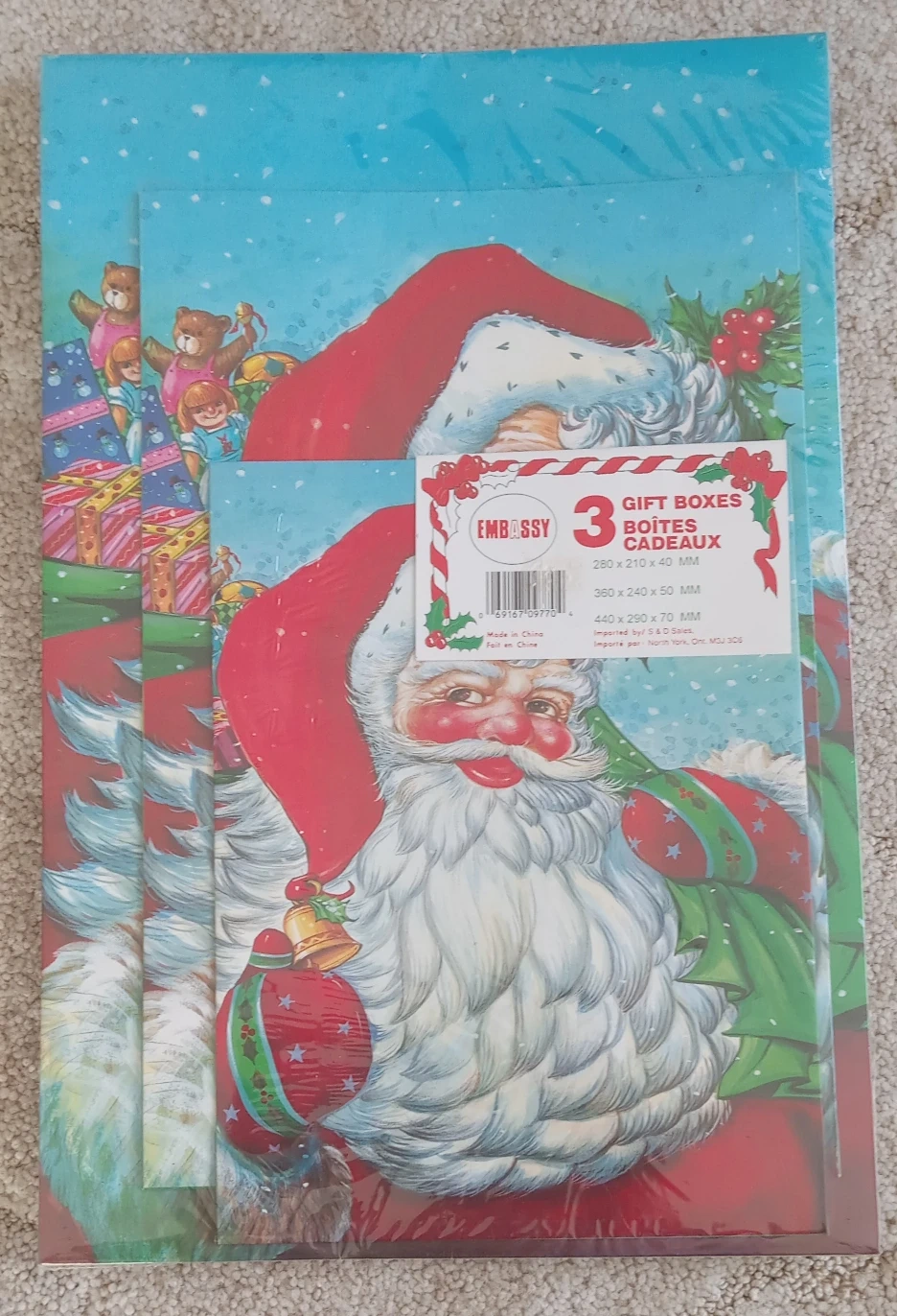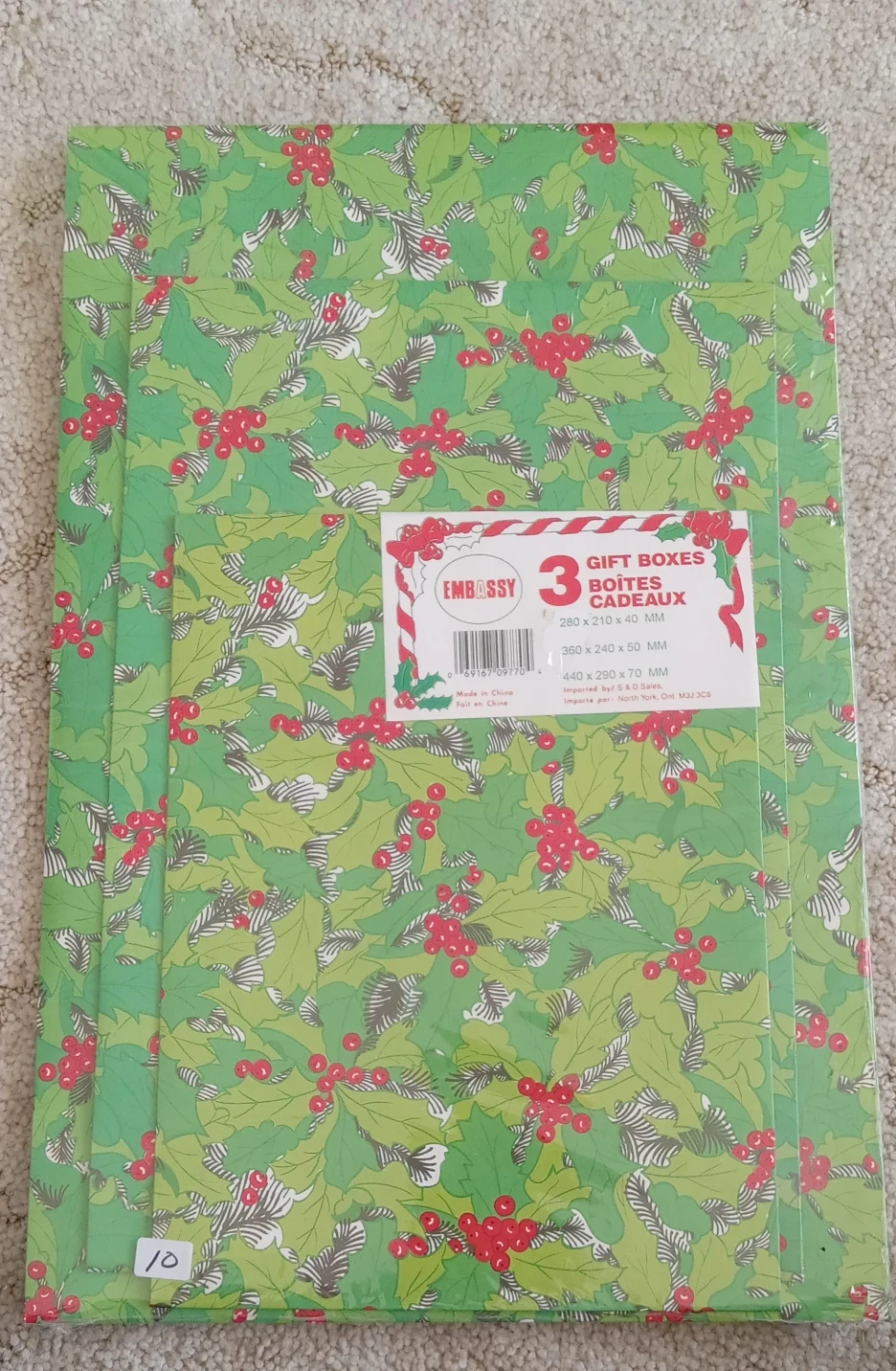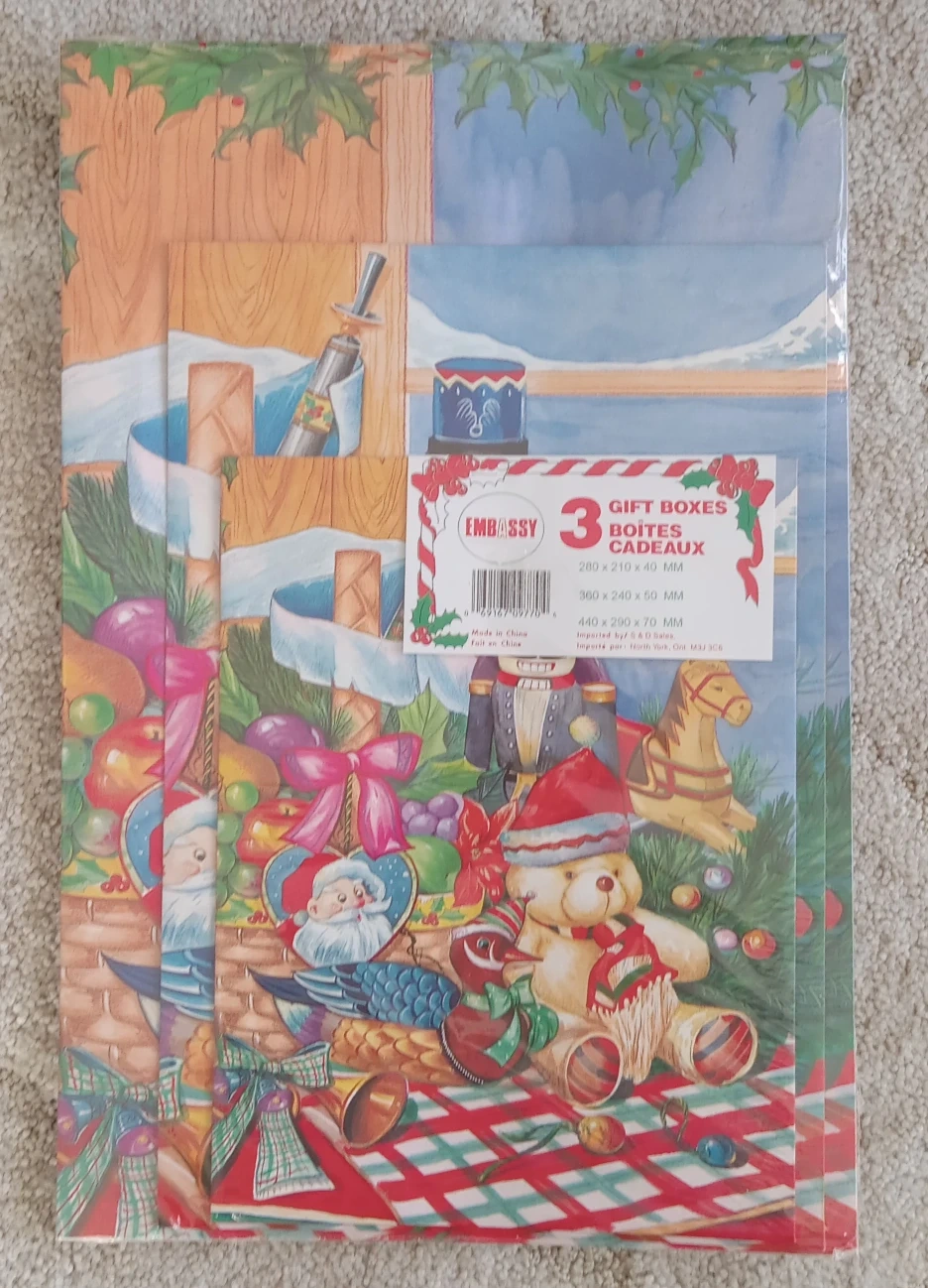Here's a set of three Embassy gift boxes, still new and sealed in their original packaging! The sizes are:
