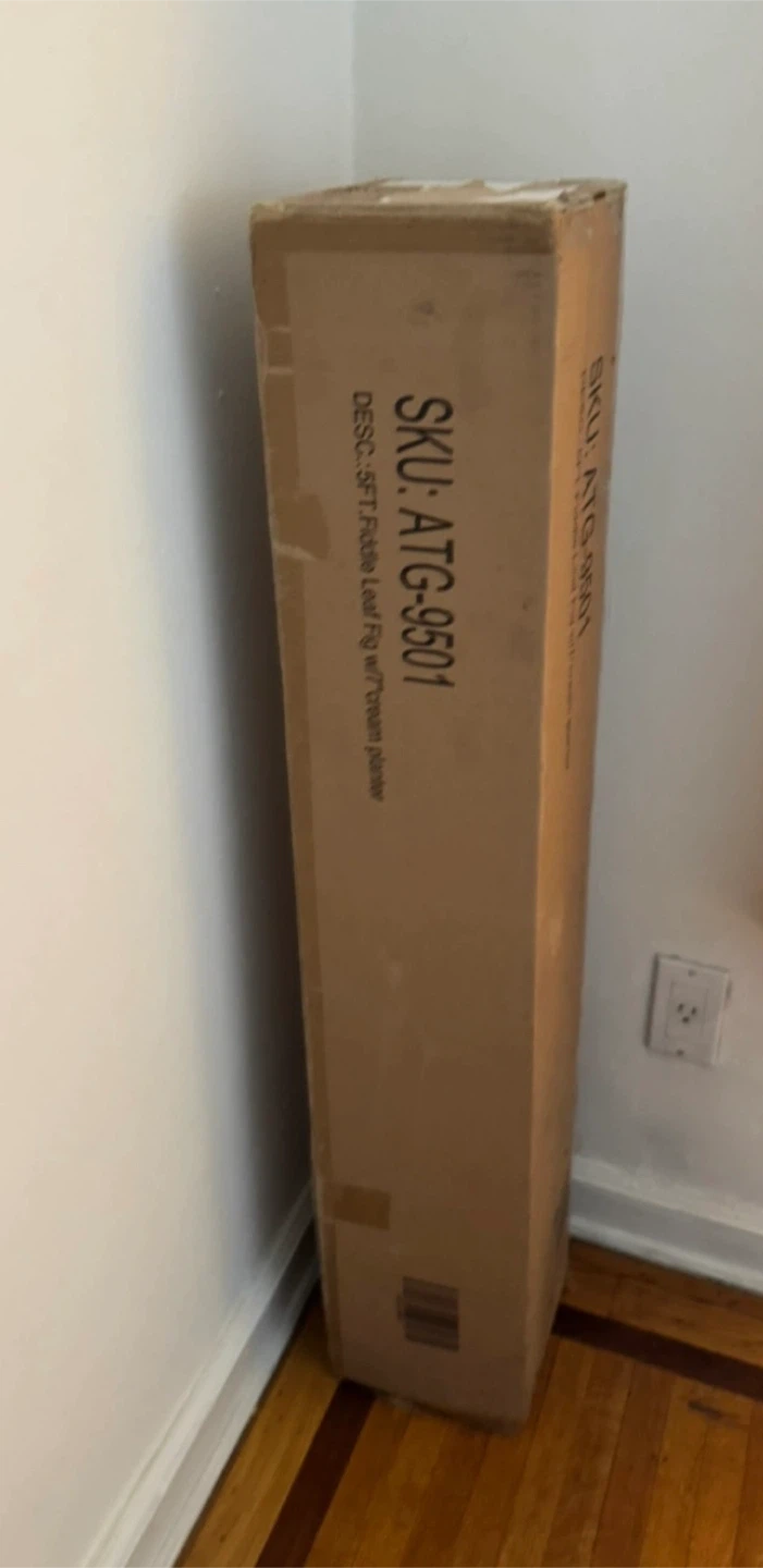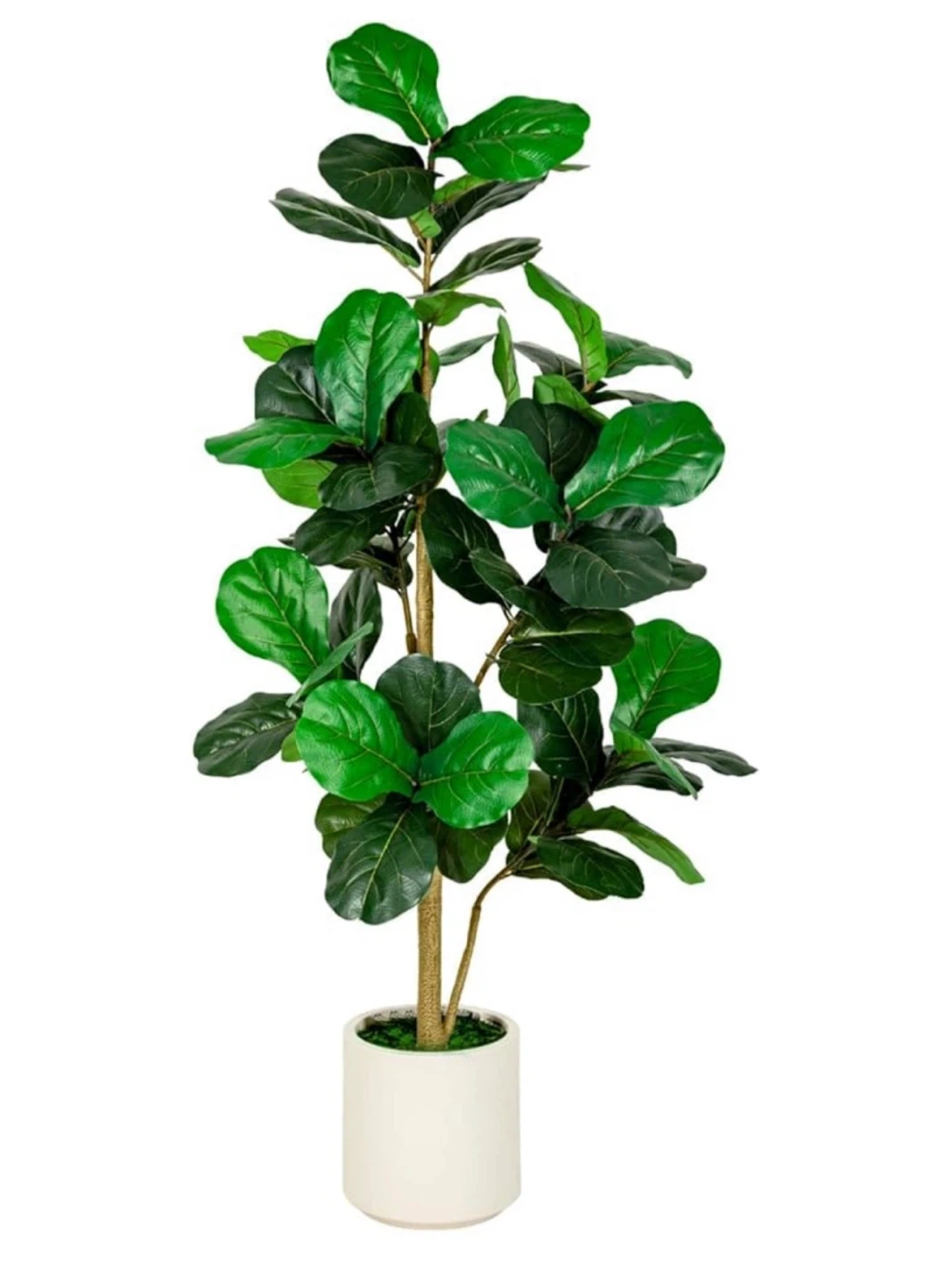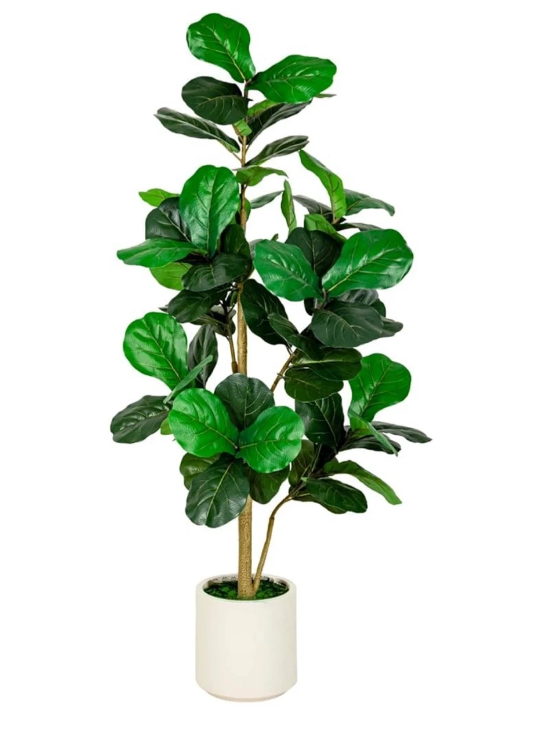 New 7' Fiddle Leaf Fig with white Planter. It's a great way to add some greenery to your home without the hassle of real plants.