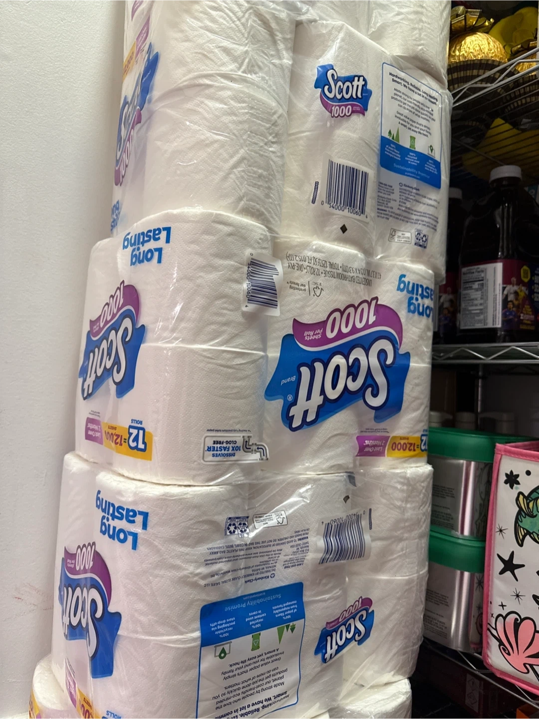 Selling a pack of Scott 1000 toilet paper! It's the long-lasting kind, with 12 rolls per pack. Each roll has 1000 sheets, so it should last you a while. Dissolves 10x faster and is clog-free