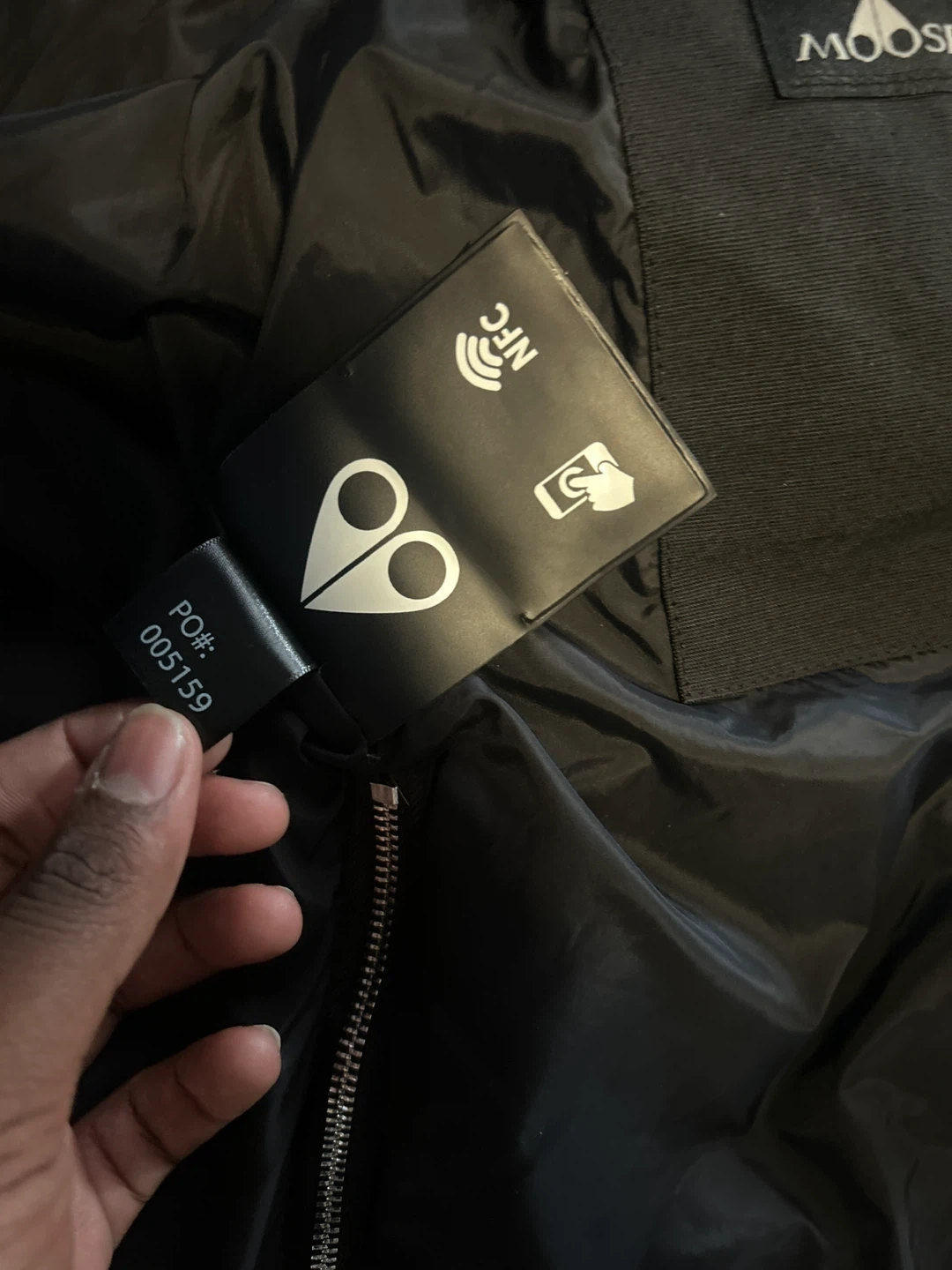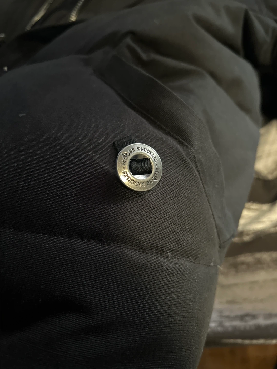 Selling a Moose Knuckles black down parka in size L. Fits like a medium. It's in great condition and ready to keep you warm this winter! Check out the photos for details.