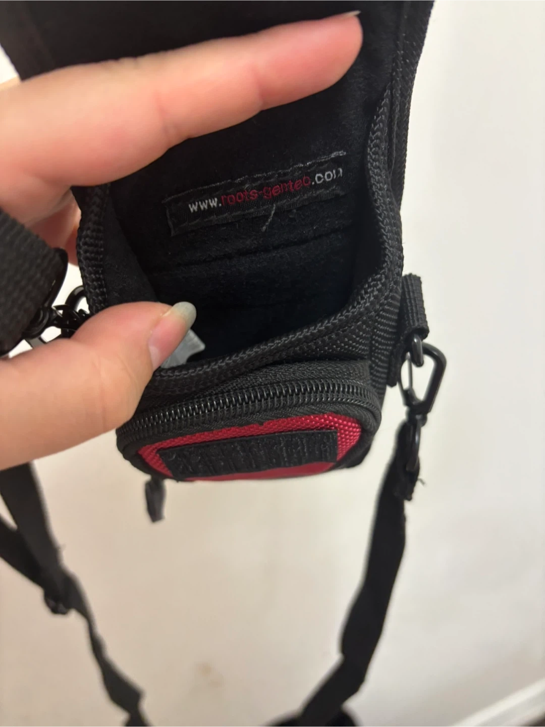 It has a long cross body strap that’s detachable AND and Velcro belt loop.
