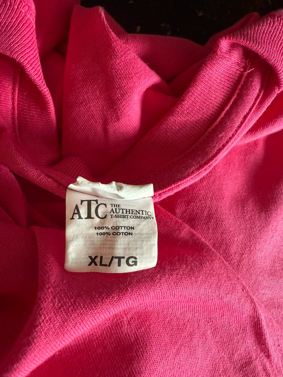 Selling an ATC Authentic T-Shirt in size XL. The shirt is new (no tags), features a unique native design with the words 'Élever les autres' and 'Uplift others'. It's made of 100% cotton and is a vibrant pink colour.