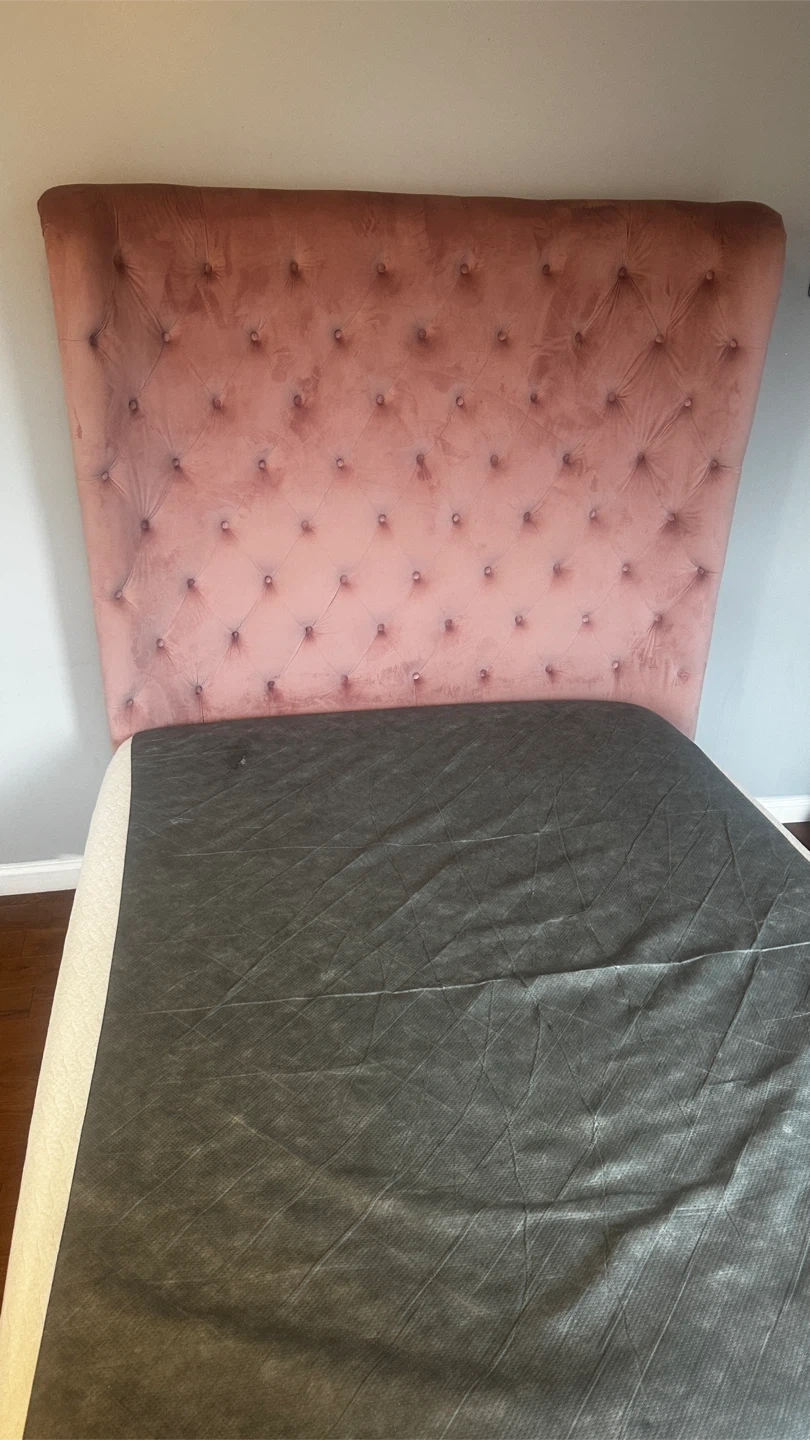 Cosmopolitan Velvet Upholstered Bed W/Iron Frame and Mattress