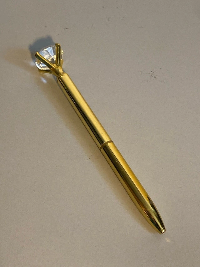 This elegant gold diamond pen adds a touch of sparkle to your writing. The pen is used, but remains in excellent condition and perfect for adding a bit of glam to your everyday tasks!