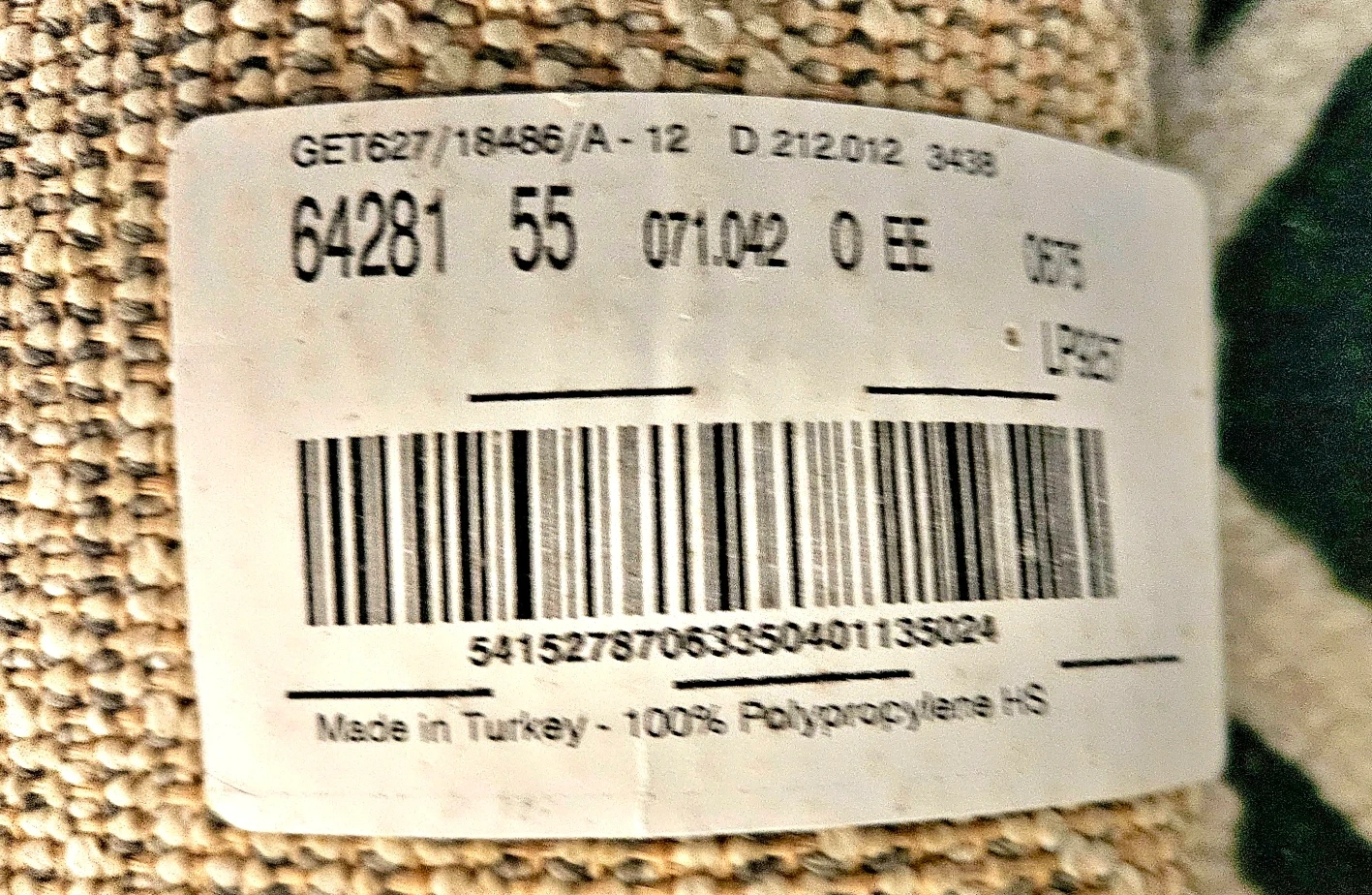 Selling a gently used area rug made from 100% Polypropylene HS. It was made in Turkey and has the code GET627/18486/A-12.