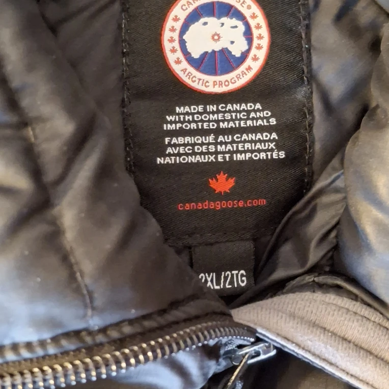 Selling a Canada Goose down jacket in black, size 2XL. It's in great condition and ready to keep you warm this winter! Made in Canada with domestic and imported materials.