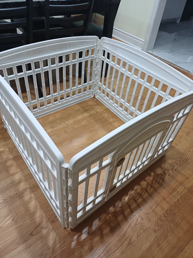 Selling a Brand New and Never been used... White dog playpen in great condition! It's perfect for keeping your little pet one safe and contained while they play. It's foldable and easy to set up and take down, making it convenient for storage or travel. This playpen is perfect for indoor or outdoor use, providing a safe and fun space for your furry baby to explore.