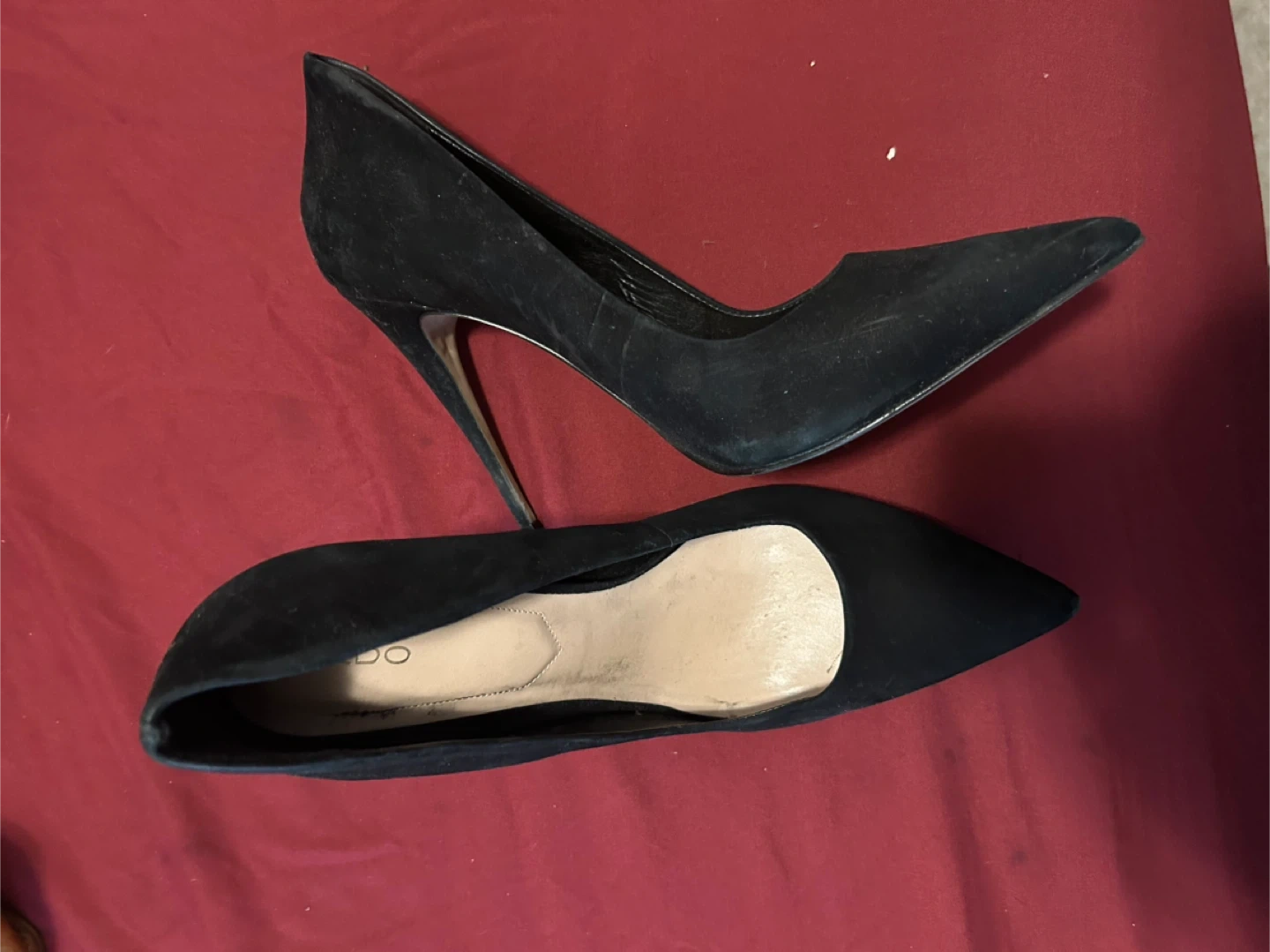 Selling a pair of Aldo heels in black suede. They're in good condition and ready for a new home! Need some cleaning up but great condition don’t wear heels like this anymore