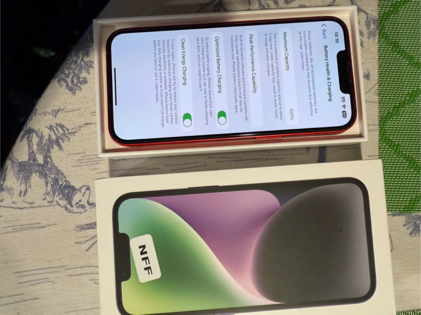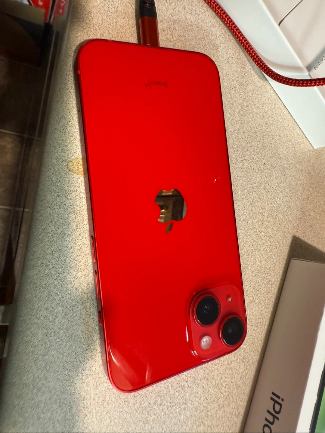 Selling a RED iPhone 14. It comes with its original box and charging cable. This phone has a dual-camera system for great photos and videos. It's in great condition! 128 GB Battery 100% Unlocked