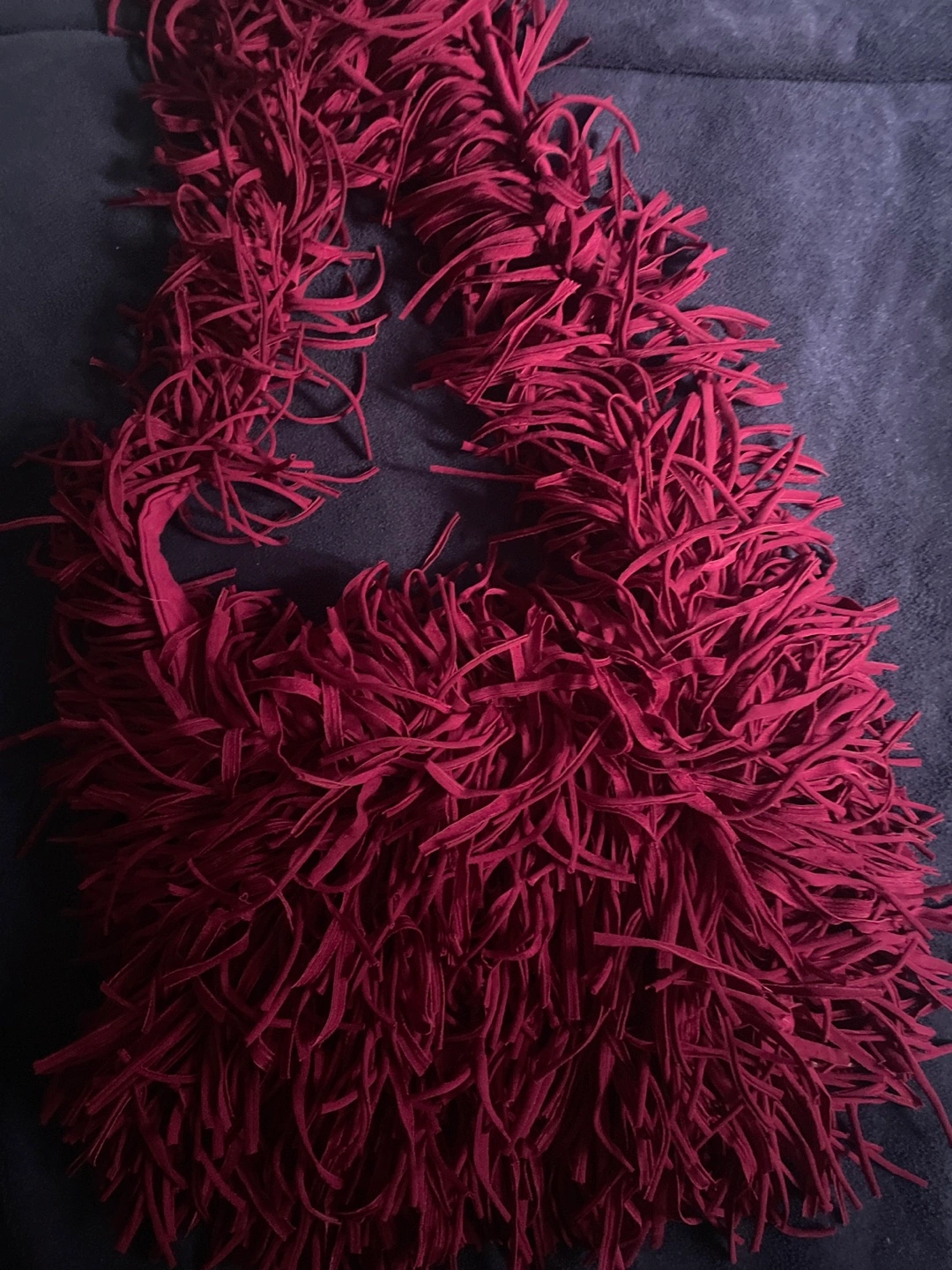 This burgundy tassel bag is a unique piece from Brazil! It features a fun, fringed design that's sure to catch the eye. The bag is in good new conditions (never worn) and ready for a new home. This piece is open to flexible pricing