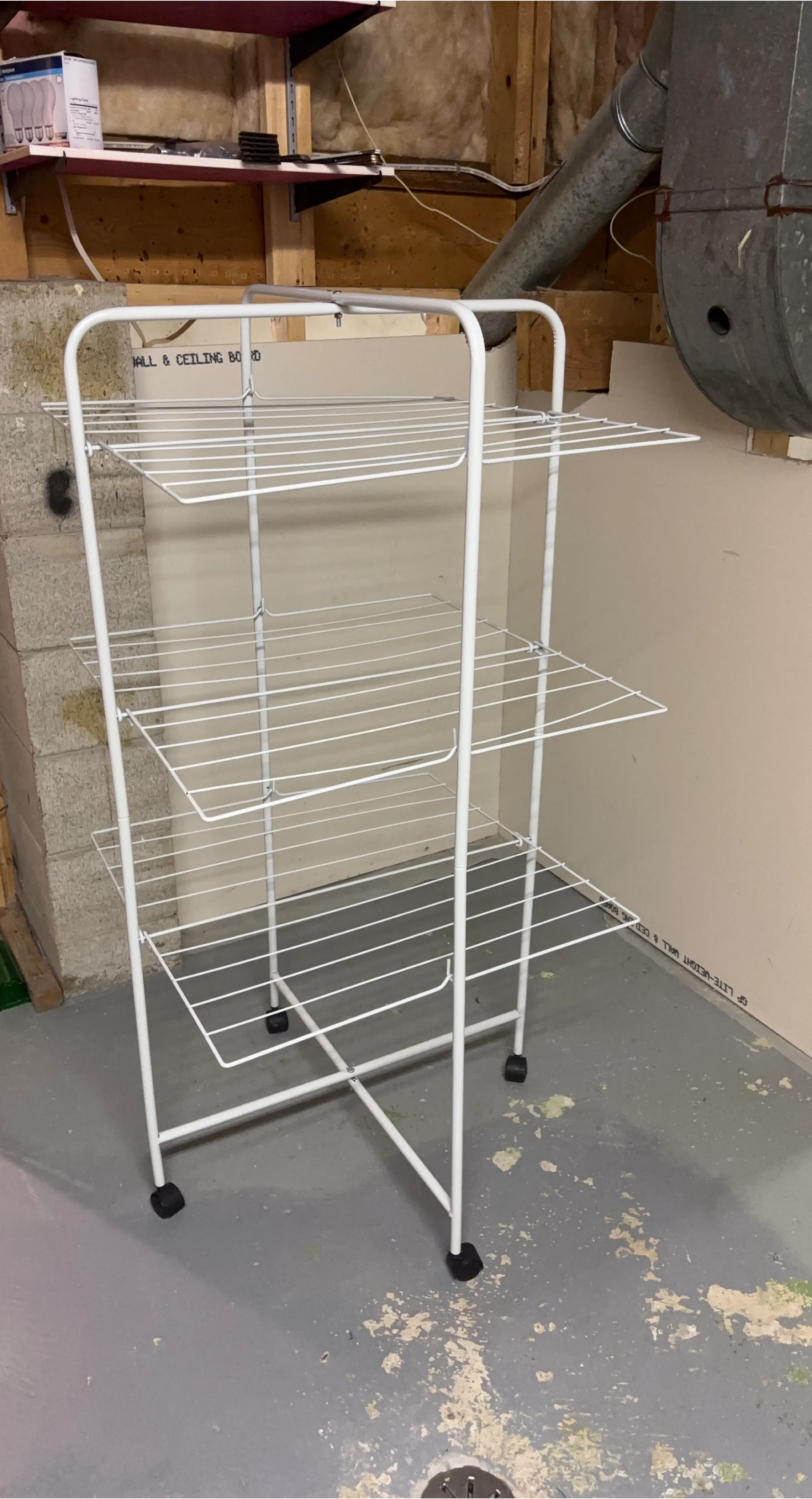 Selling a sturdy, white metal clothes drying rack. It's in great condition and ready to help you save on dryer costs! Features multiple tiers for ample drying space and convenient wheels for easy moving around your home