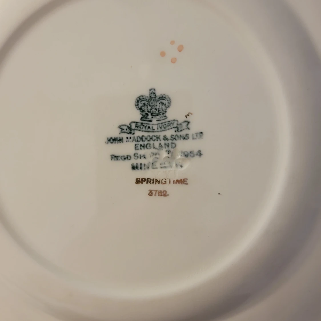Selling a lovely Royal Ivory plate made by John Maddock & Sons in England! It's part of the Springtime series, pattern number 3782. The plate has a beautiful floral design with a vibrant orange center. Perfect for adding a touch of vintage charm to your home!