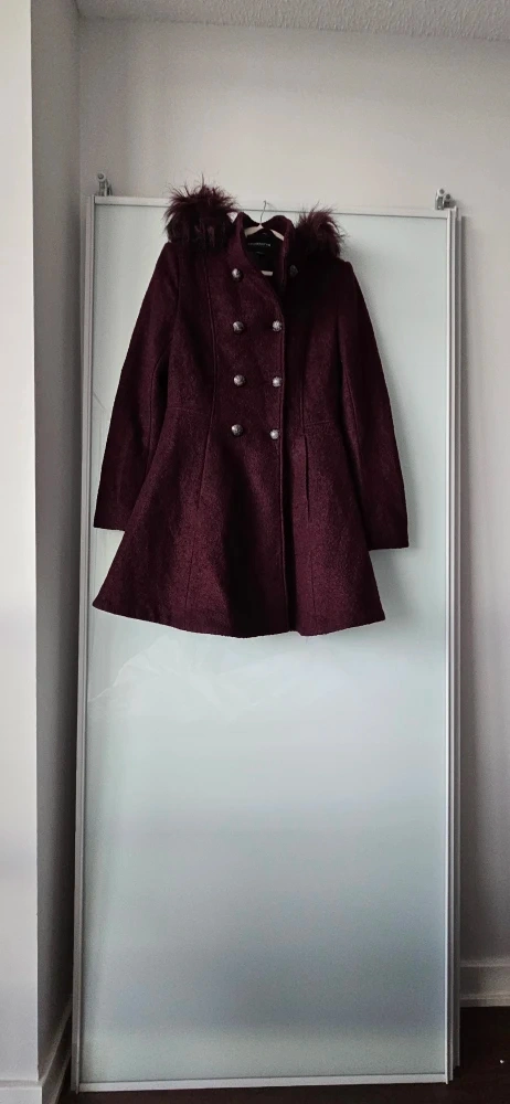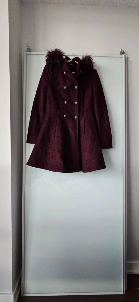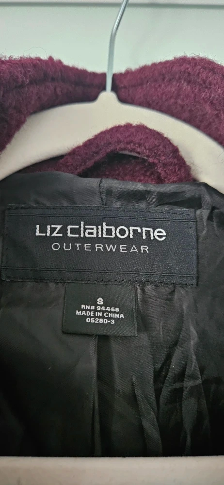 Selling a brand new lovely Liz Claiborne Women's Outerwear coat with a completely removable hoodie, in a beautiful burgundy colour. It's a women's size small. Perfect for staying warm and stylish! Never used.