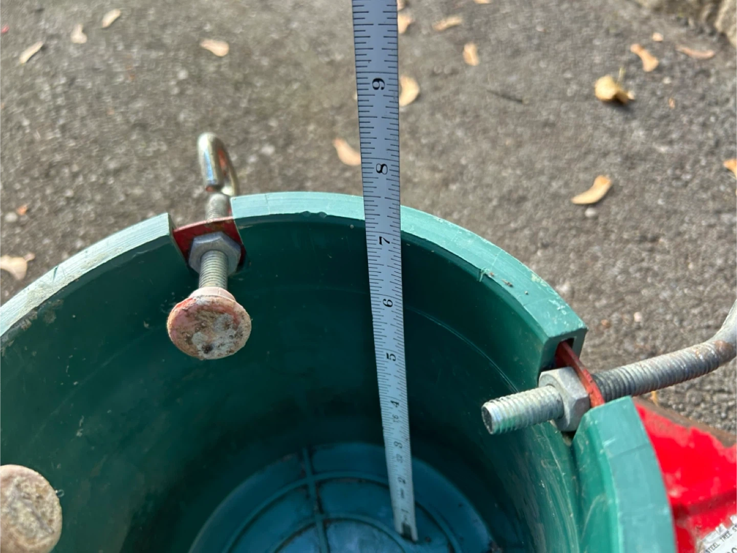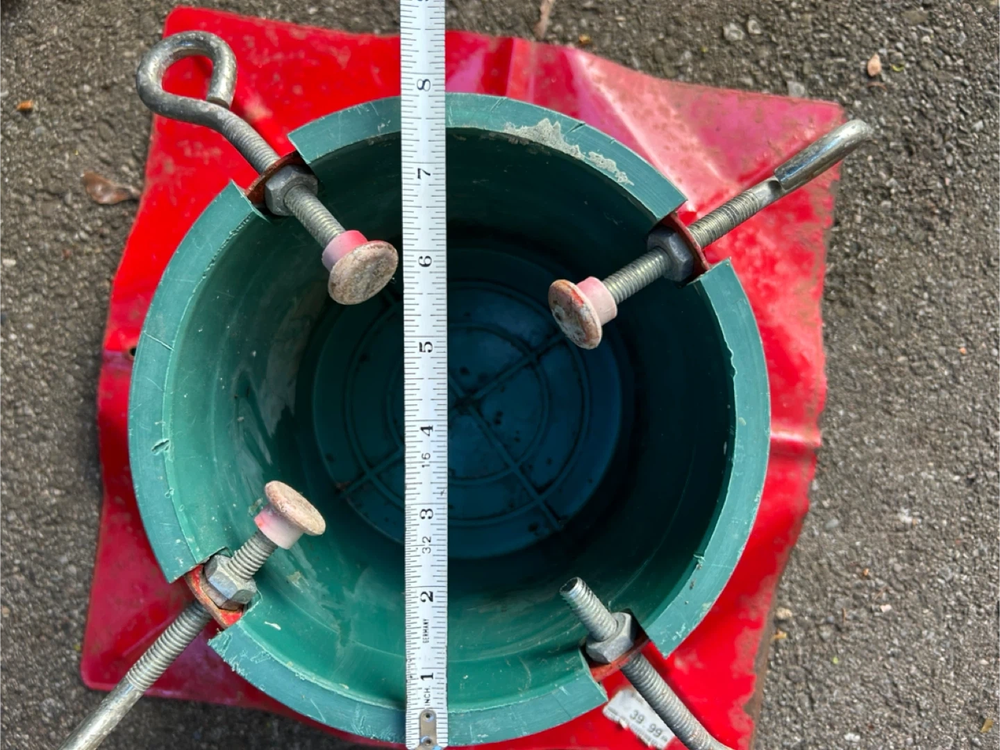 Interior plastic water bucket is about 7 inch wide but can likely take 5'inch thick tree trunk