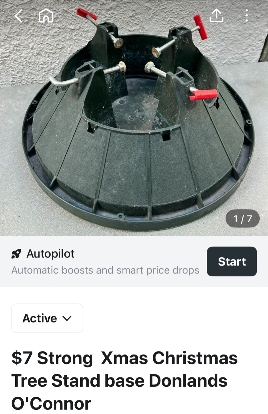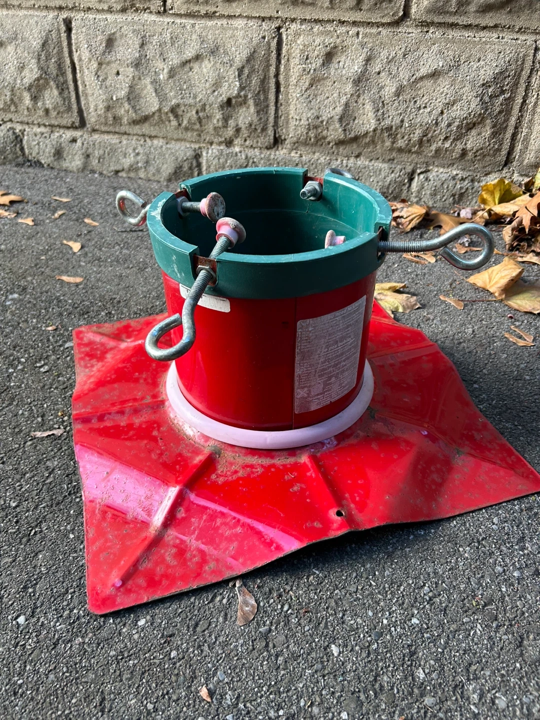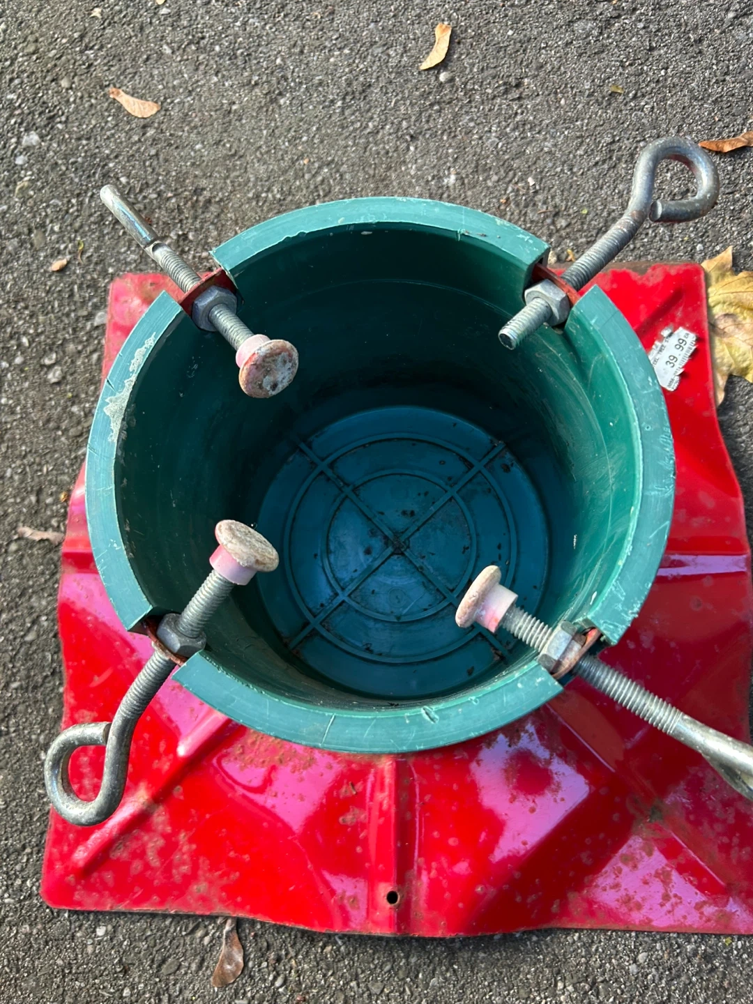 Strong metal Christmas tree stand base 16 x16 base 5 inch thick Xmas tree trunk Donlands O'Connor