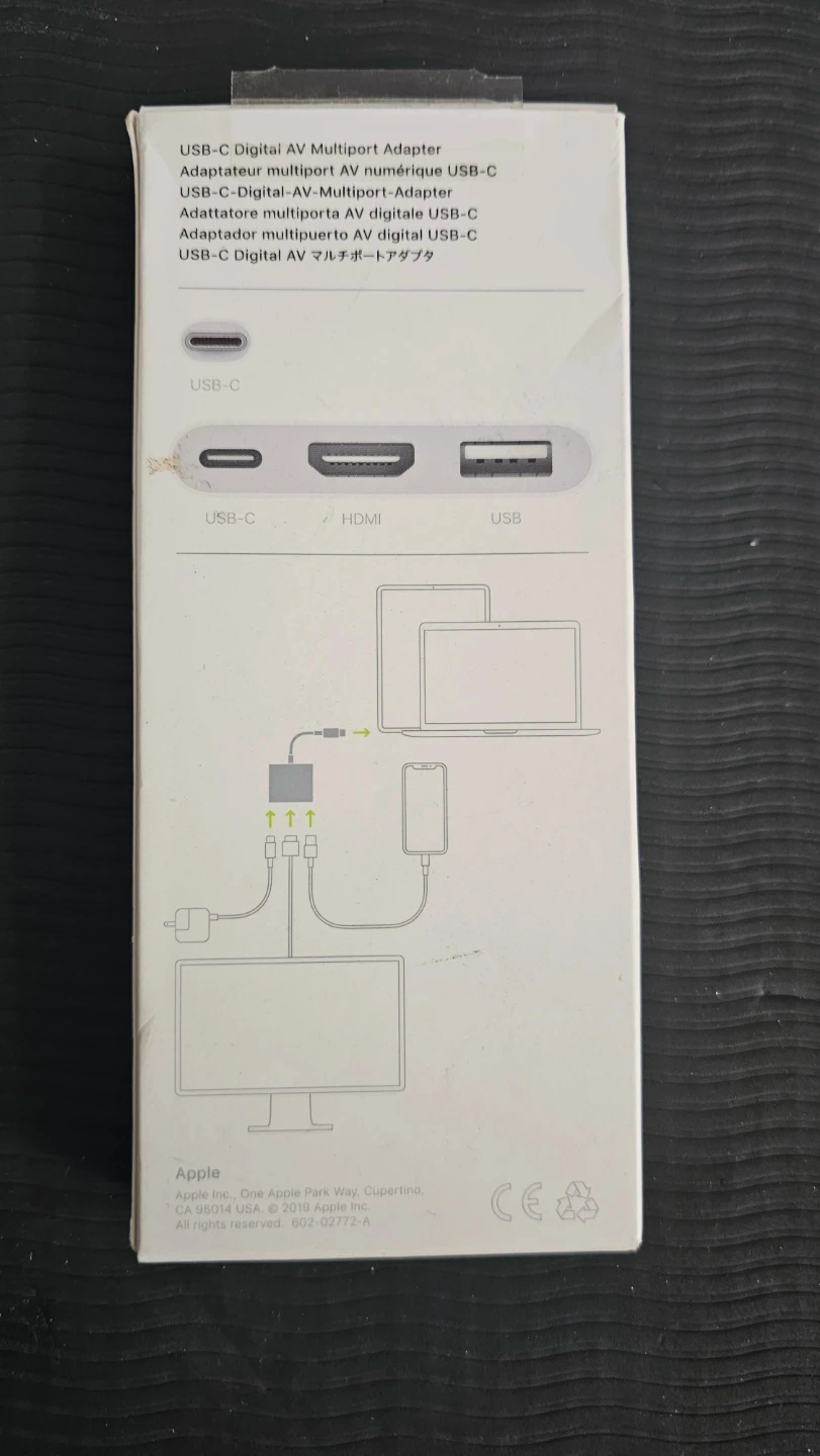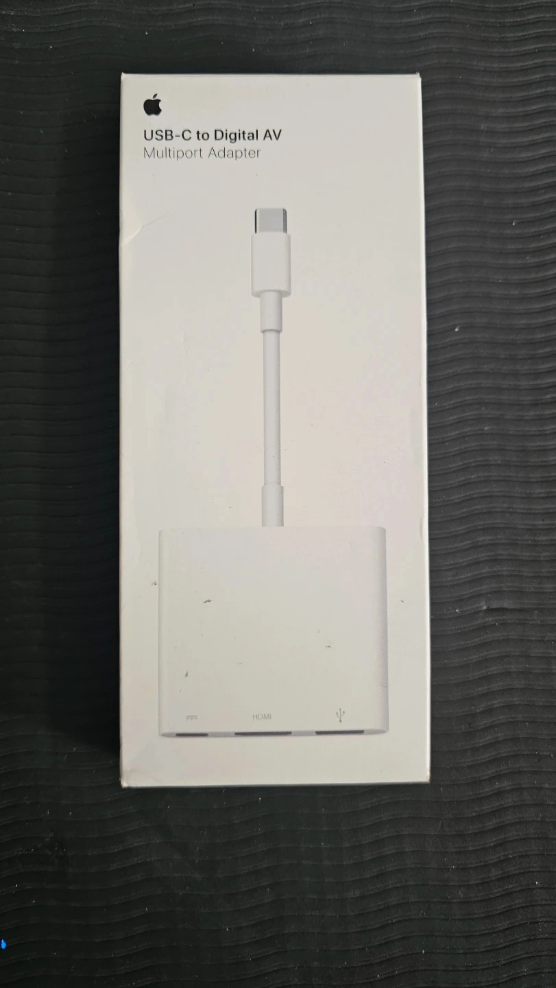 Selling an Apple USB-C Digital AV Multiport Adapter. It's brand new in box. This adapter allows you to connect your USB-C device to an HDMI display, as well as standard USB devices and another USB-C cable for charging. Perfect for expanding your connectivity!