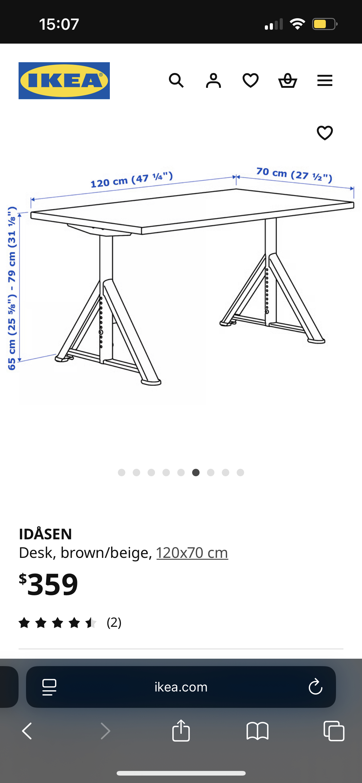 IKEA IDÅSEN desk, brown & grey, 120x70cn