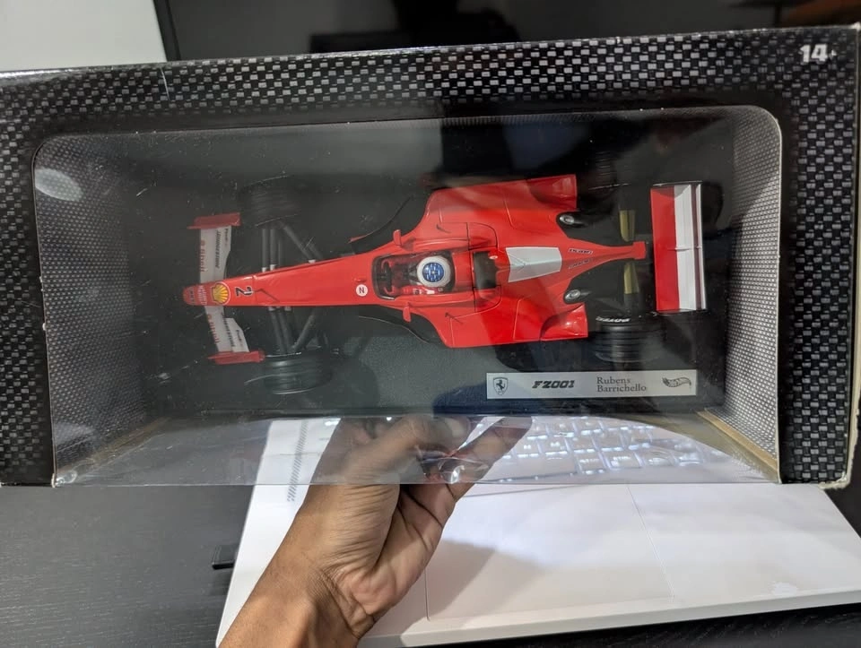 1/18 scale, undisplayed Mattel Hot Wheels Ferrari F2001 Rubens Barrichello #2.