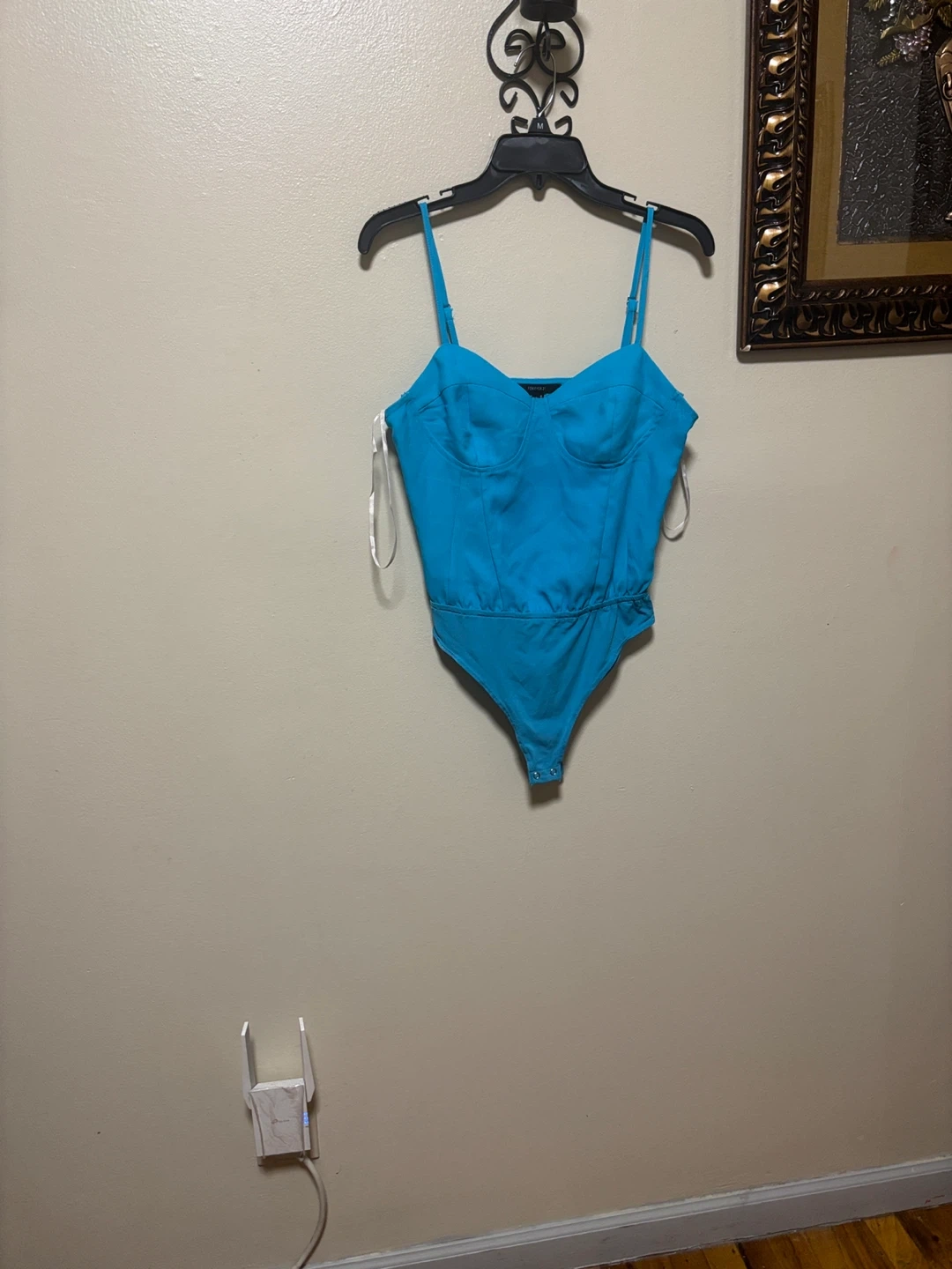 Selling a cute blue bodysuit from Forever 21 in size medium! It's a vibrant color and in great condition. Perfect for a night out or to dress up any outfit. Let me know if you have any questions!