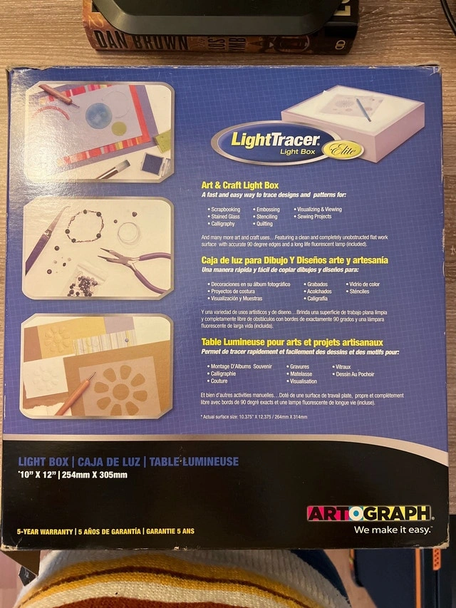 I'm offering an Artograph Light Tracer Elite light box, perfect for various art and craft projects with its durable, lightweight aluminum construction and 10" x 12" illuminated surface, making tracing easy. Specifications: