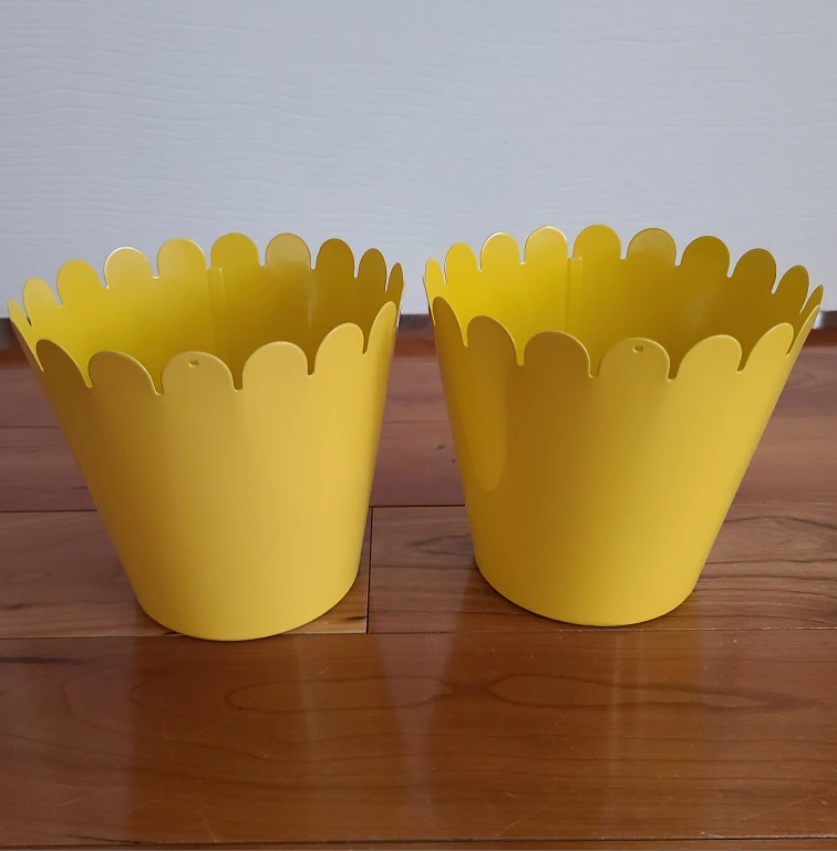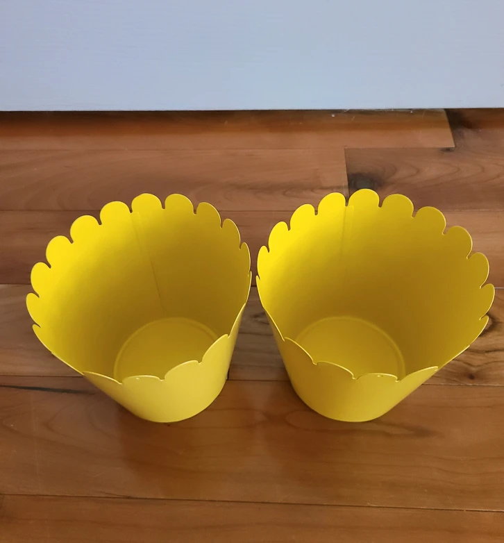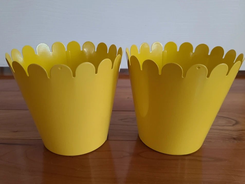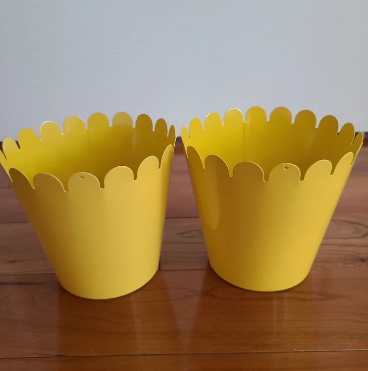 Selling a set of two yellow flower pots. They're perfect for adding a pop of colour to your indoor or outdoor space. They appear to be in great condition and ready for your favourite plants!