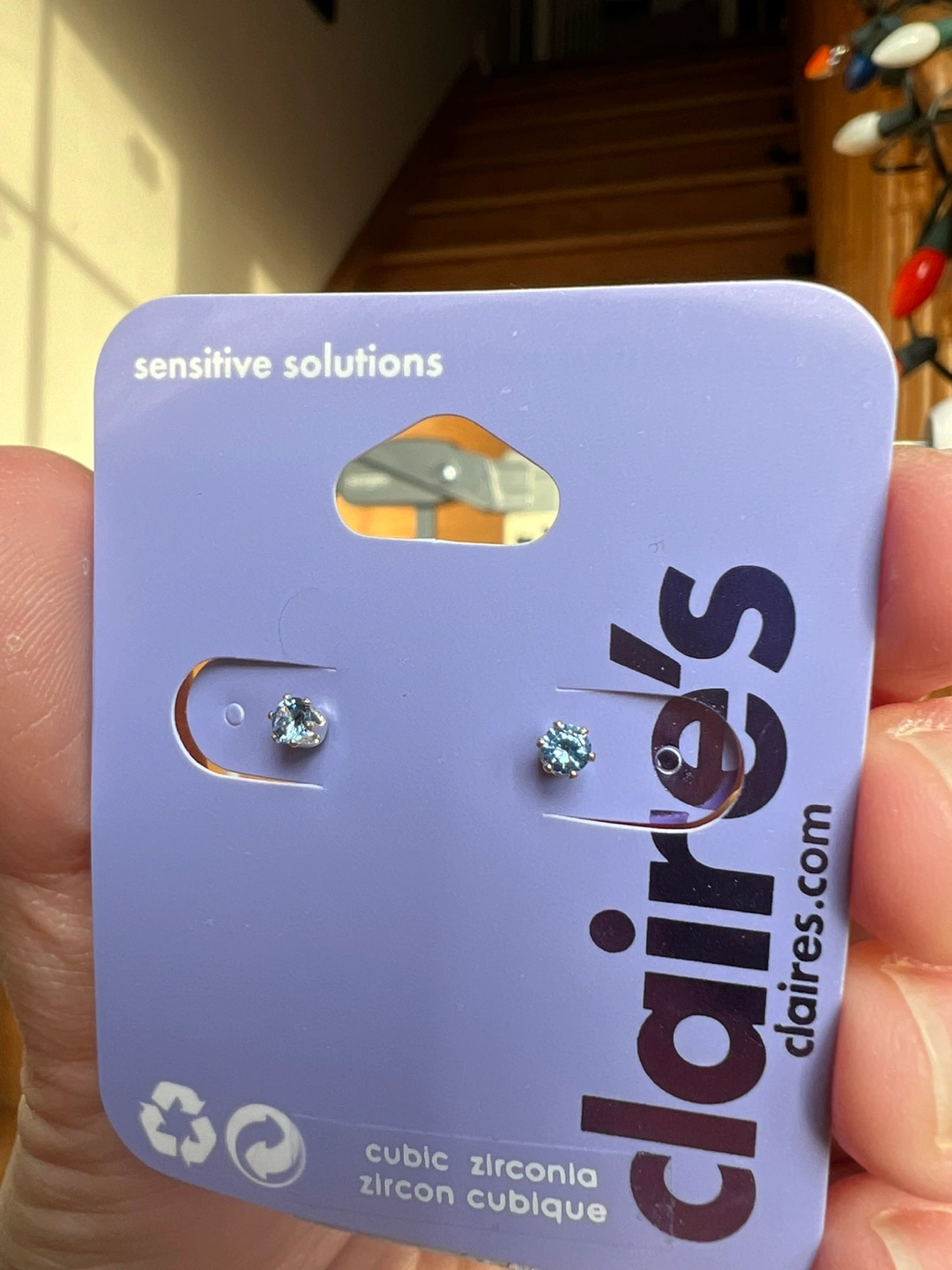 Selling a brand new pair of Claire's stud earrings! They feature cubic zirconia stones and are still on the original packaging.