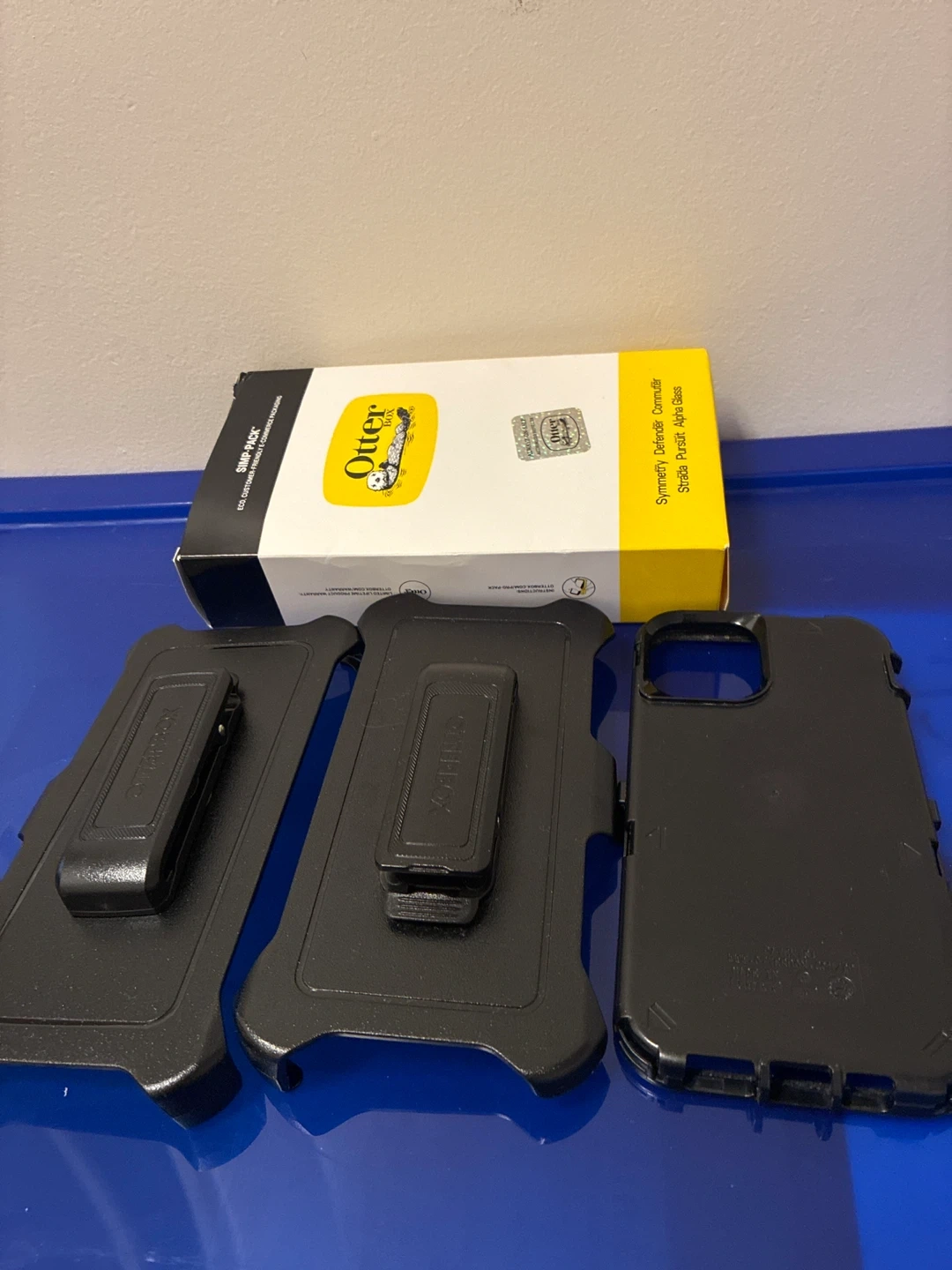 Selling a used OtterBox case for the iPhone 12 in black. It comes with two holsters and the original box! The case is in great condition and ready to protect your phone.
