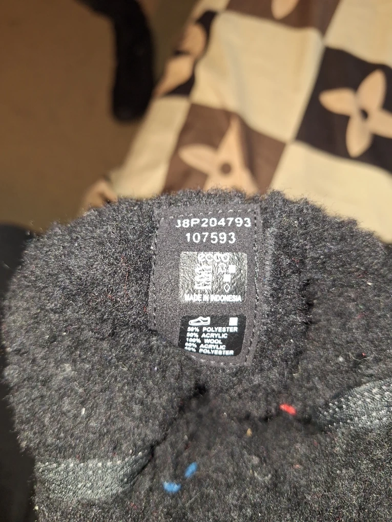 Selling a pair of Ecco winter boots in black. They're a size 8 and made in Indonesia. The material composition is 39% polyester, 36% acrylic, 16% wool, and 9% polyester.