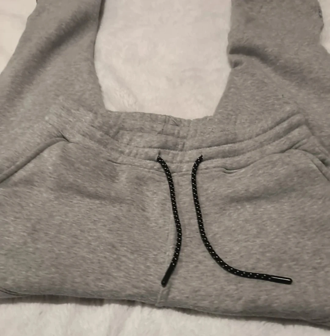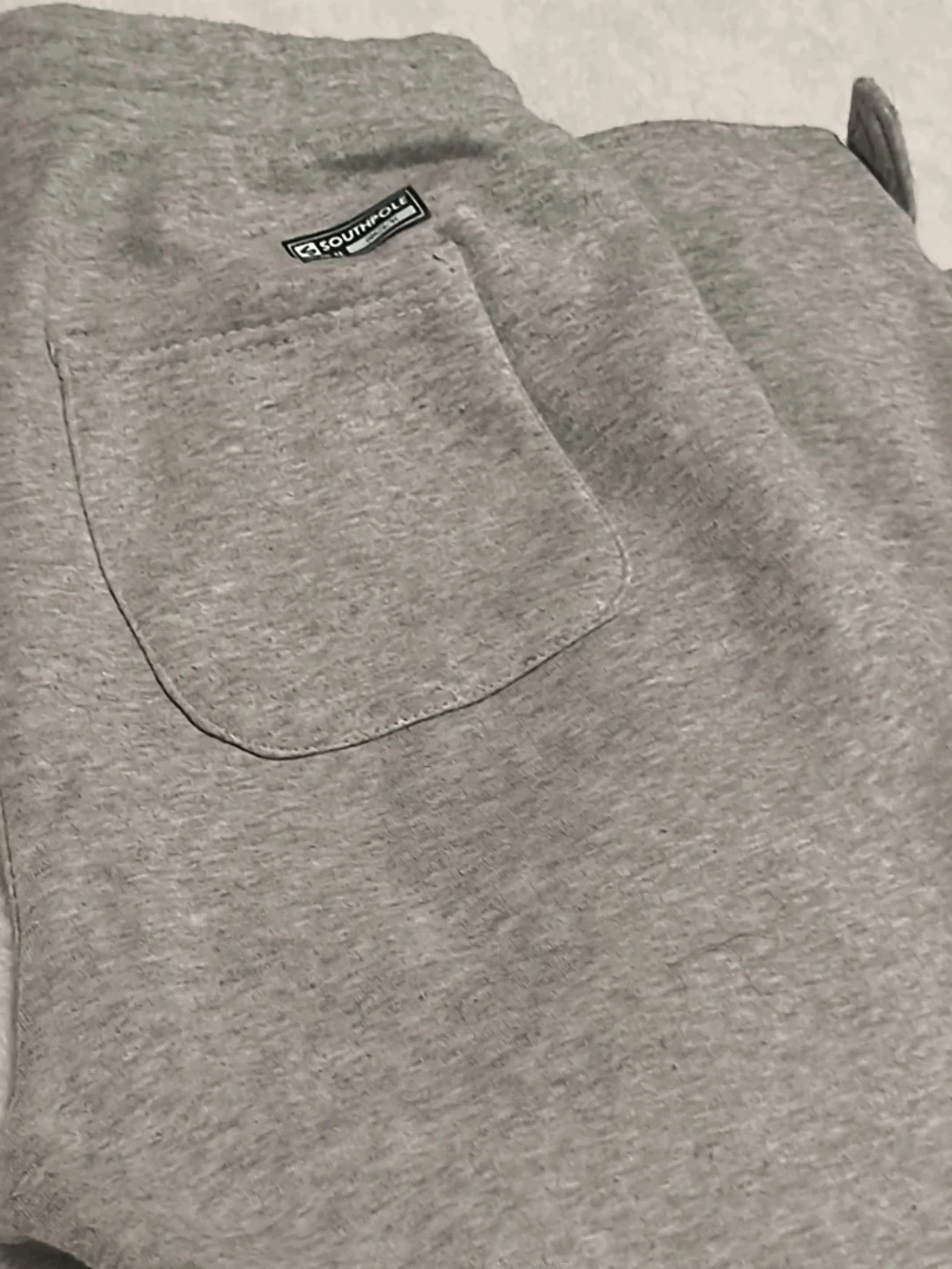 Selling a pair of Southpole fleece jogger pants in size medium! The pants are gray and made of 100% polyester. They have a unique design with a drawstring and interesting pocket details. These are perfect for casual wear or lounging around