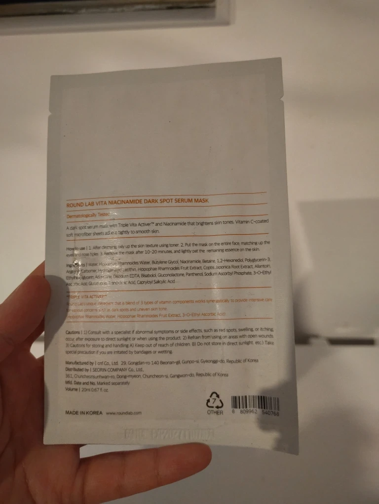 I'm selling a Round Lab Vita Niacinamide Dark Spot Serum Mask! It's a dark spot serum mask with Triple Vita Activetm and Niacinamide that brightens skin tones. It also contains Vitamin C-coated soft microfiber sheets to give a tightly-to-smooth skin. Expire date November 7 2027.