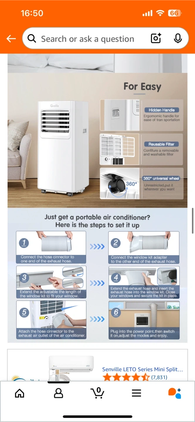 Selling a Grelife portable air conditioner in great condition! Details: Portable Air Conditioner,Grelife 8000BTU 4-in-1 AC Unit with Fan, and Dehumidifier for Up to 350 sq. ft. Featuring Smart/Sleep Modes, LED Display,Remote Control,Ultra-Quiet at 48dB,24-Hour Timer