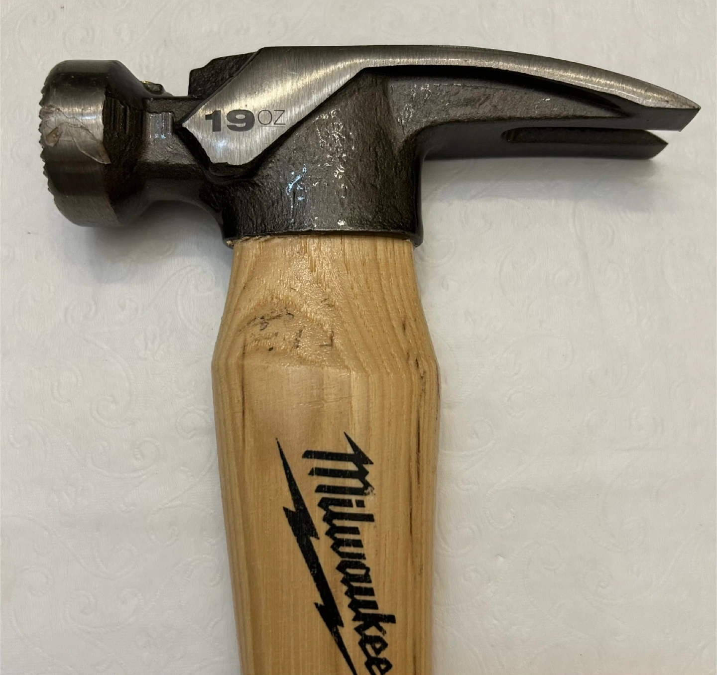 Selling a Milwaukee 19oz hammer! It has an anti-ring claw and a wooden handle. Great for any DIY projects around the house