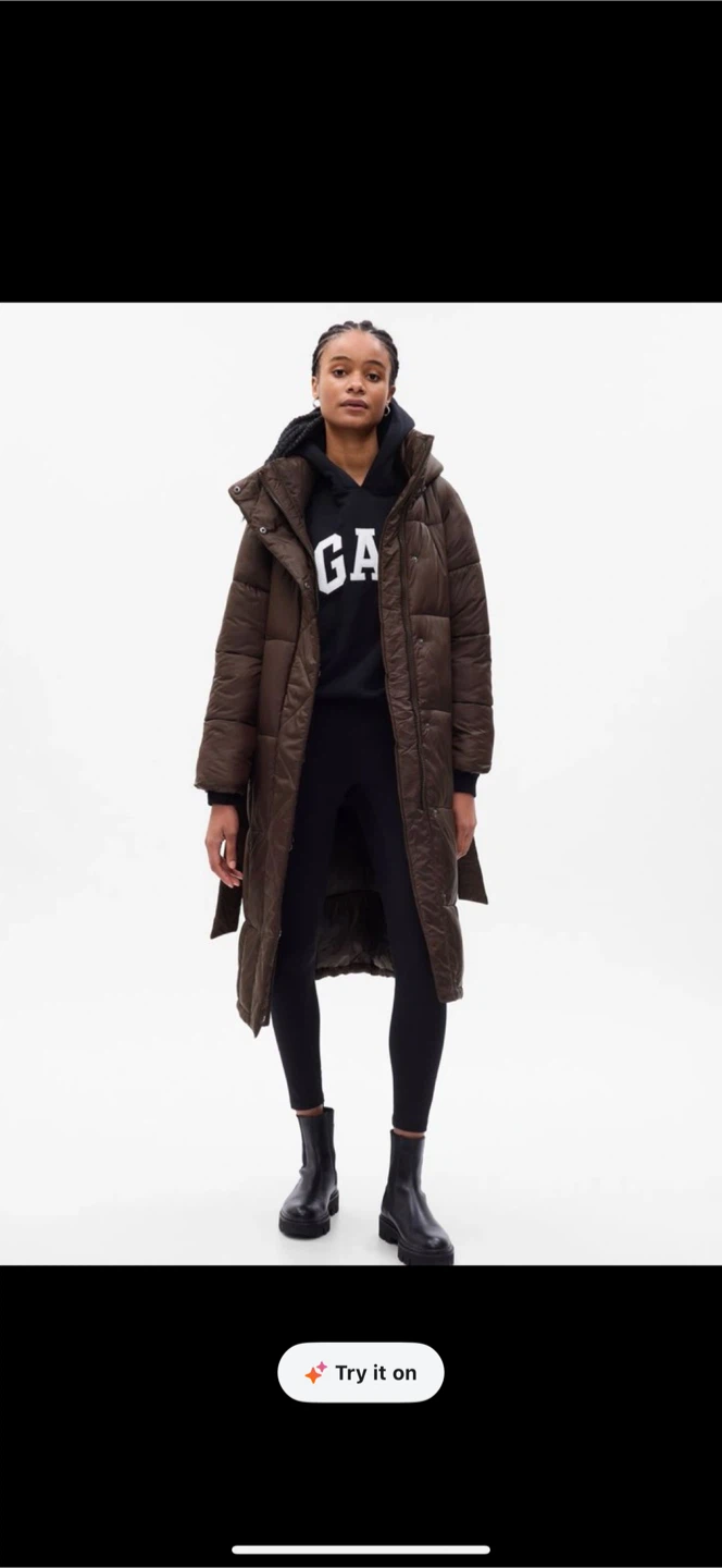 🤎 S gap long puffer jacket - brown noir with hood and belt