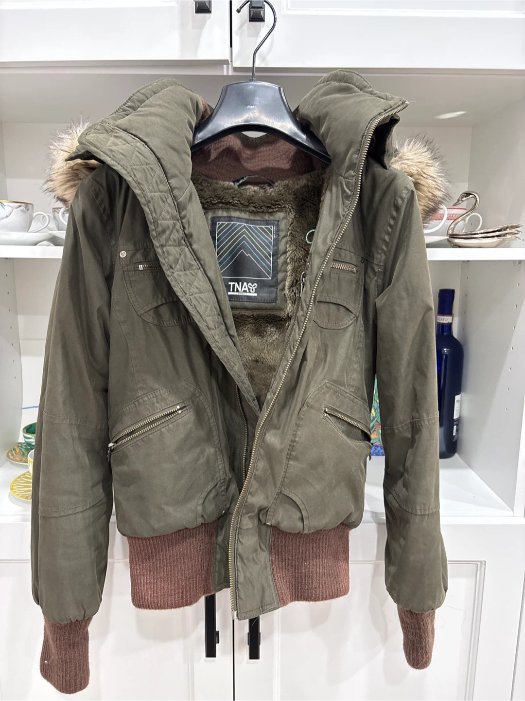 Selling a TNA winter jacket in size small. It's in great condition and super warm for those cold Canadian winters! The jacket features a cozy faux fur lining and a stylish design. Perfect for staying comfortable and fashionable during the colder months