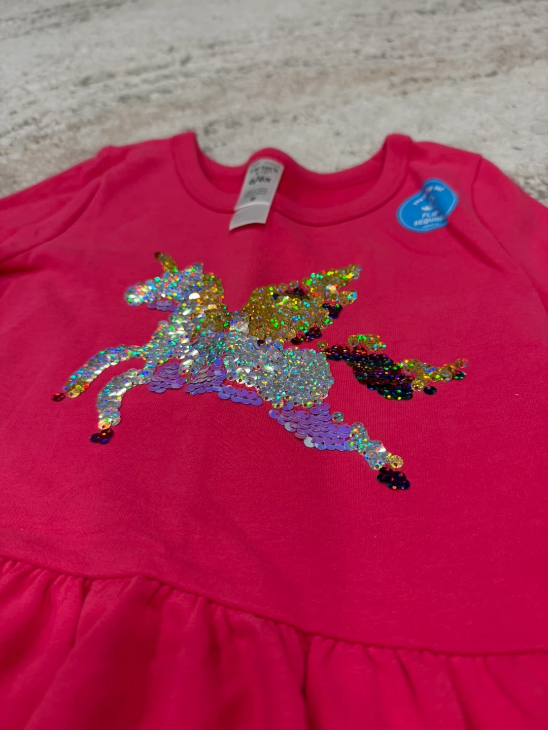 Super cute pink dress from Carter's! It features a sparkly unicorn design. The size is 6/6x perfect for your little girl.