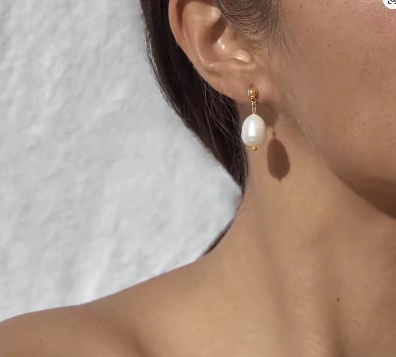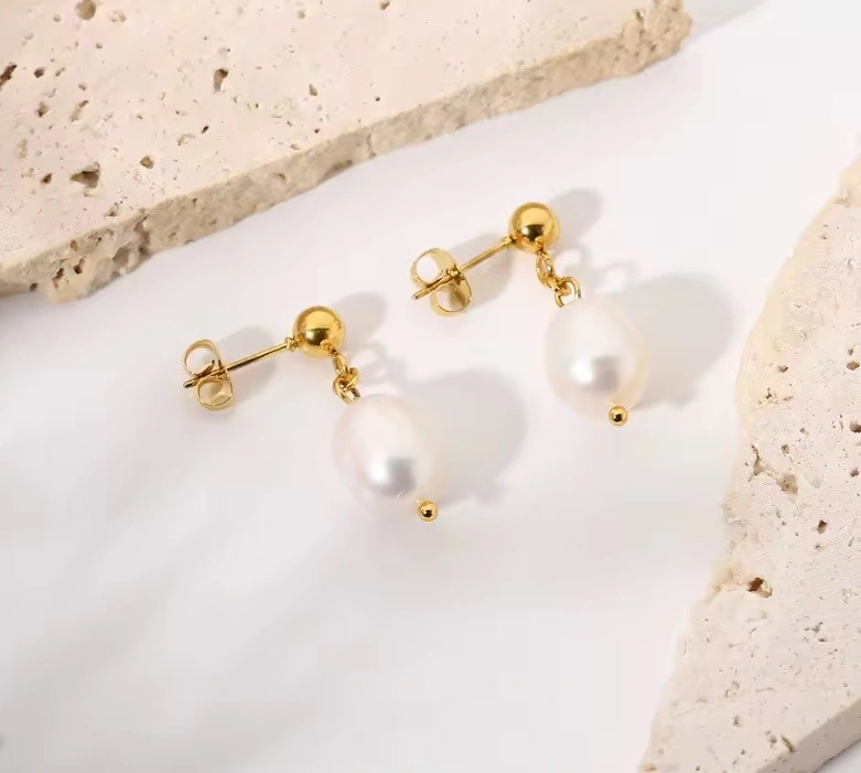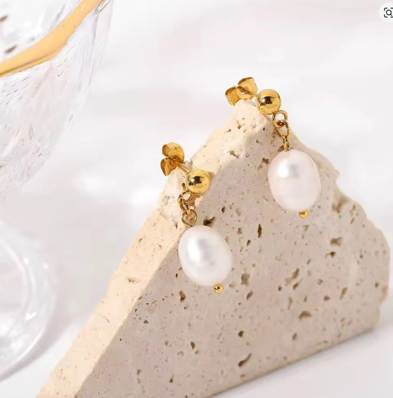 18K Gold Plated Stainless Steel Pearl Earring (Tarnish free)
