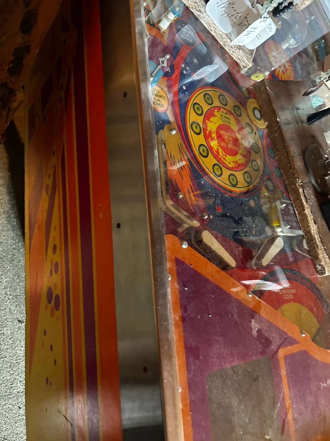 Selling a vintage pinball machine. It's a unique piece that would look great in any games room or as a decorative item. It features colourful artwork and classic pinball action. If you're interested, send me a message!