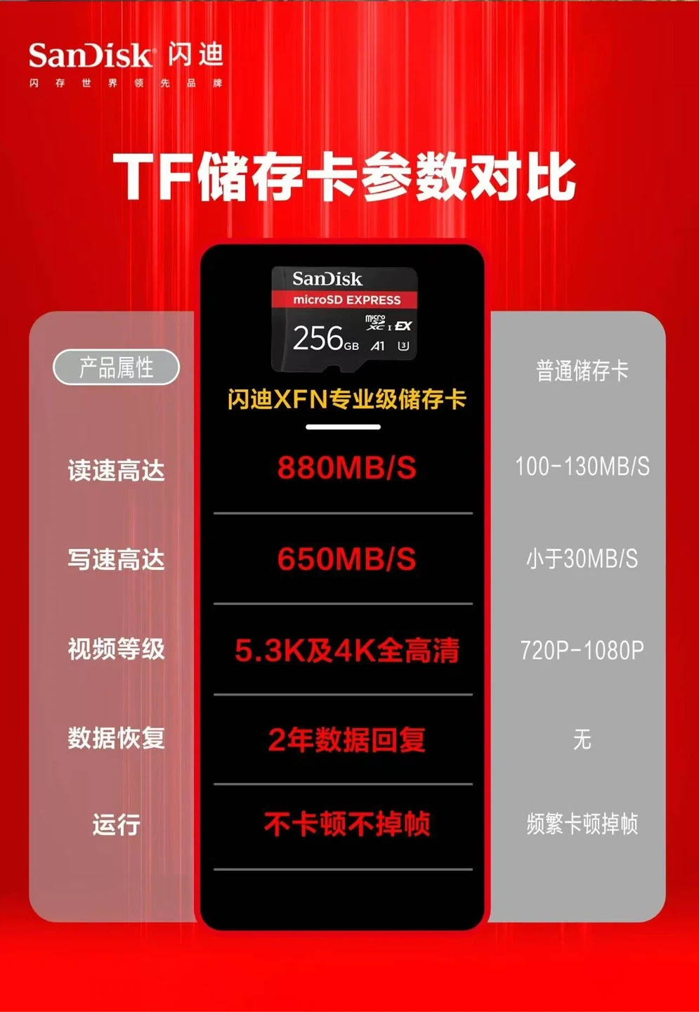 24 SanDisk microSD Express memory cards (256GB). Key Features: Capacity: 256GB Next-generation high-speed microSD Express specification Maximum read speed 880MB/s Write speed up to 650MB/s A1-level application performance, suitable for expanding mobile/tablet applications V30 video specification, enabling smooth 4K video recording Suitable for: 📱 Mobile phones & tablets 🎮 Game consoles (such as Switch) 📷 Action cameras / 4K cameras 🛩️ Drones 💻 Expanding laptop storage Special