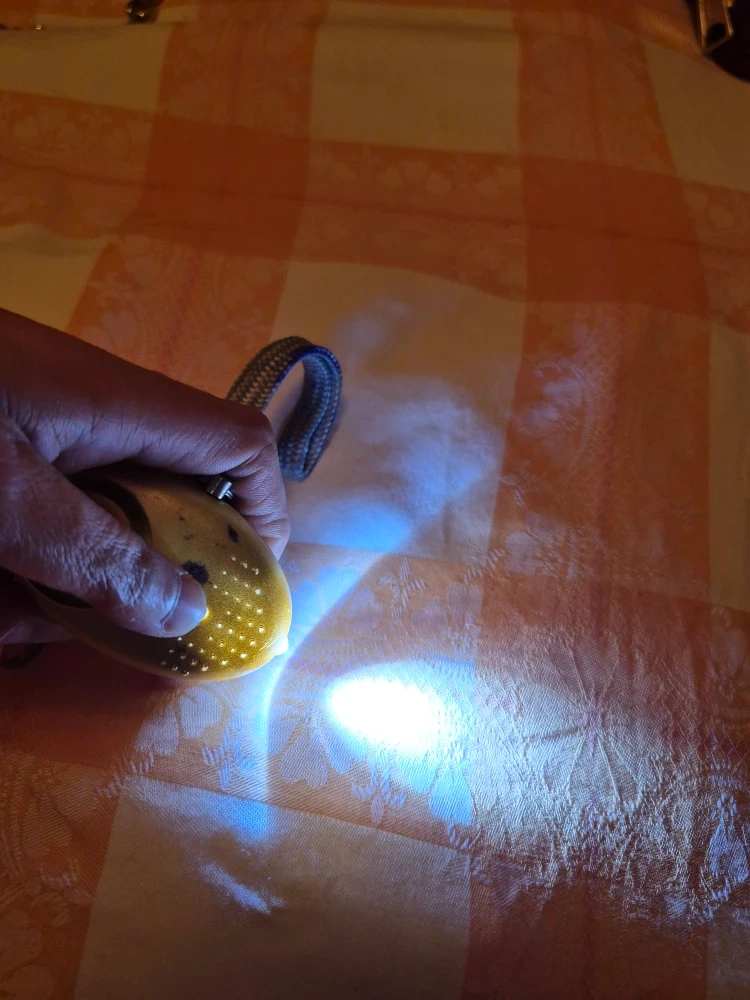 This is a personal safety alarm keychain. It's designed to emit a loud sound to attract attention in emergencies. It also has a built-in flashlight for added safety at night