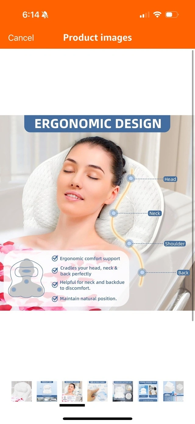 Enhance your relaxation with this new ultimate comfort bath pillow, featuring six non-slip suction cups and breathable 5D air mesh fabric, designed for ergonomic support of your head, neck, and shoulders. It fits all standard bathtubs.