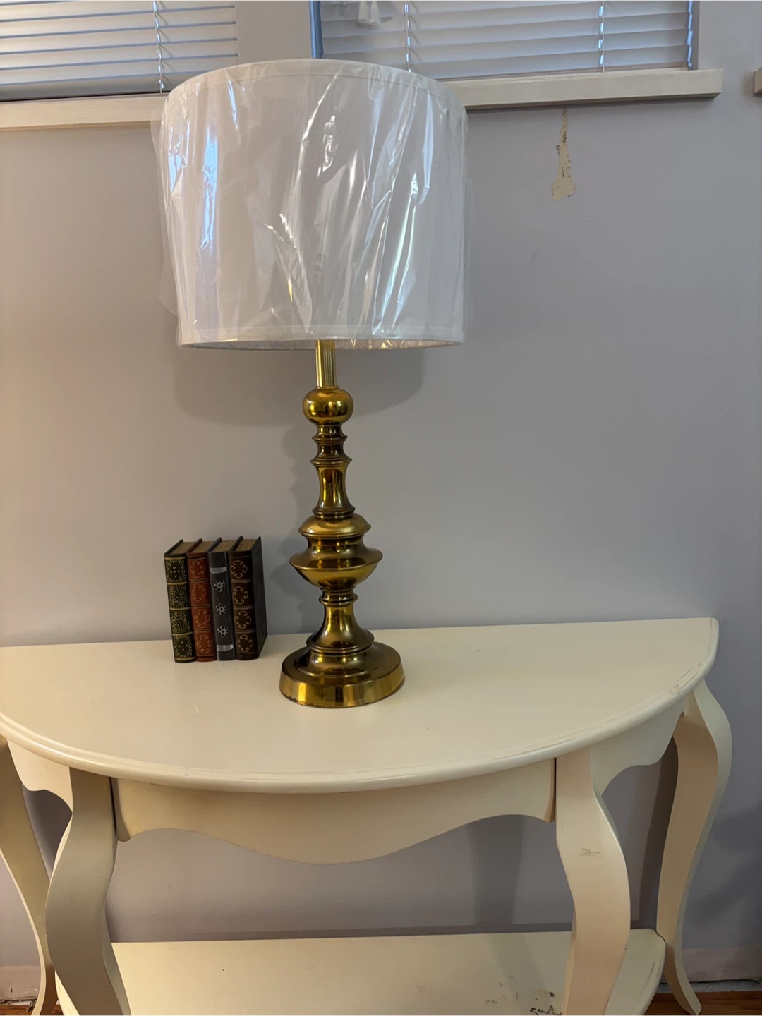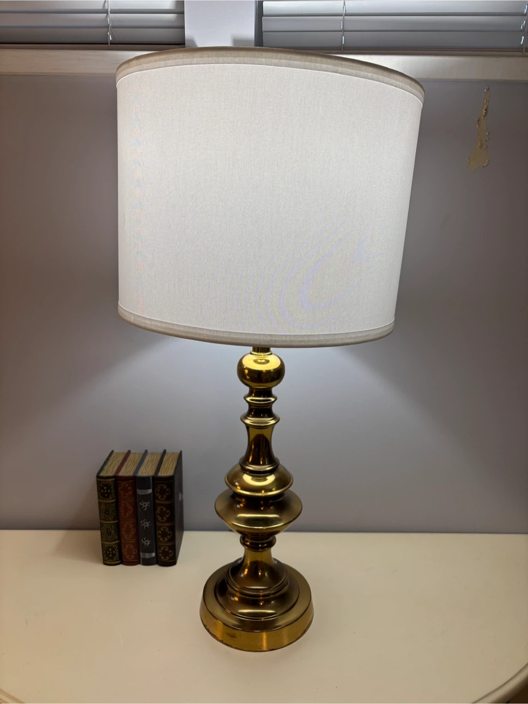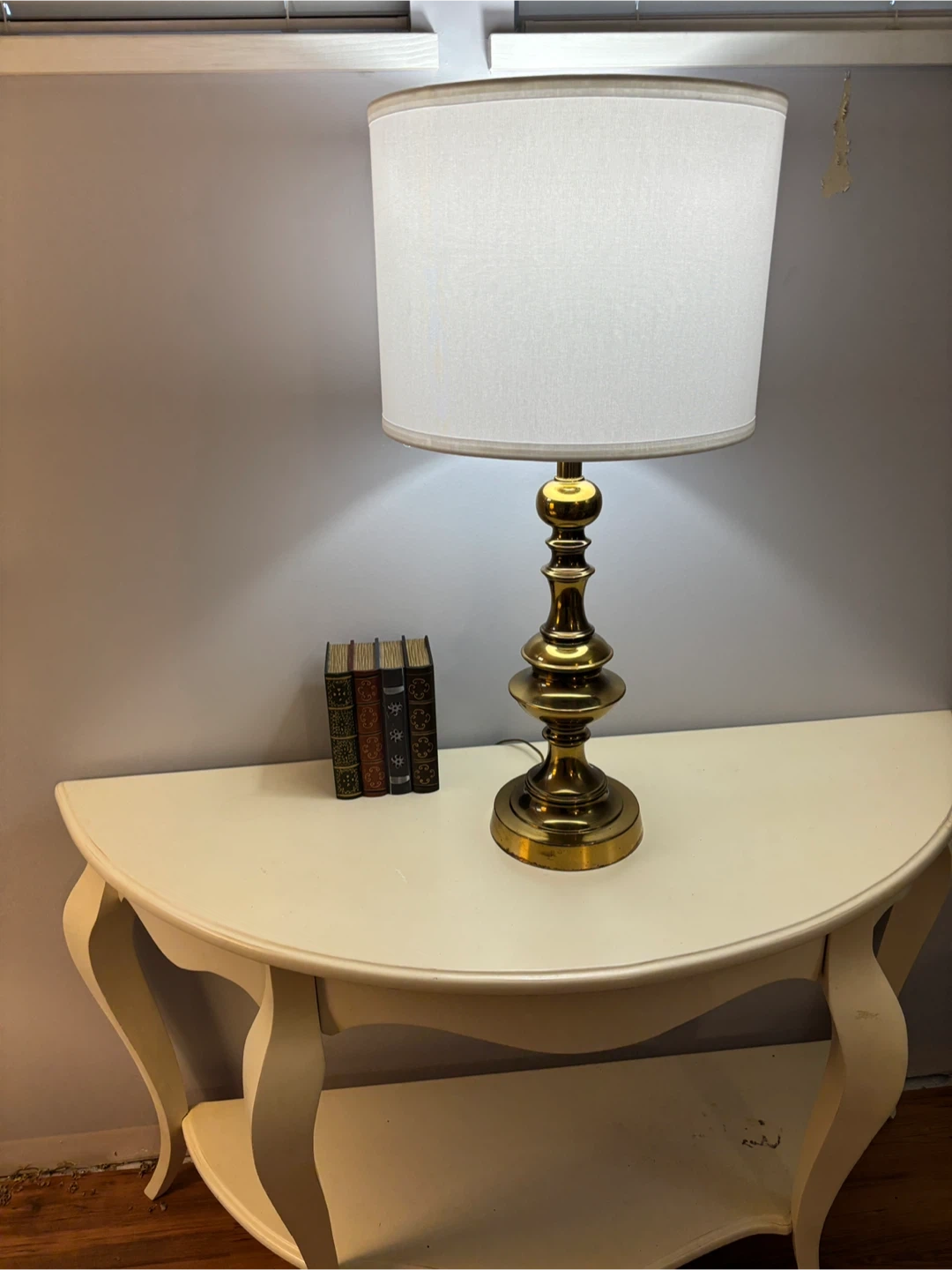 π Solid brass Table Lamp w/ NEW White Shade + Bulb π