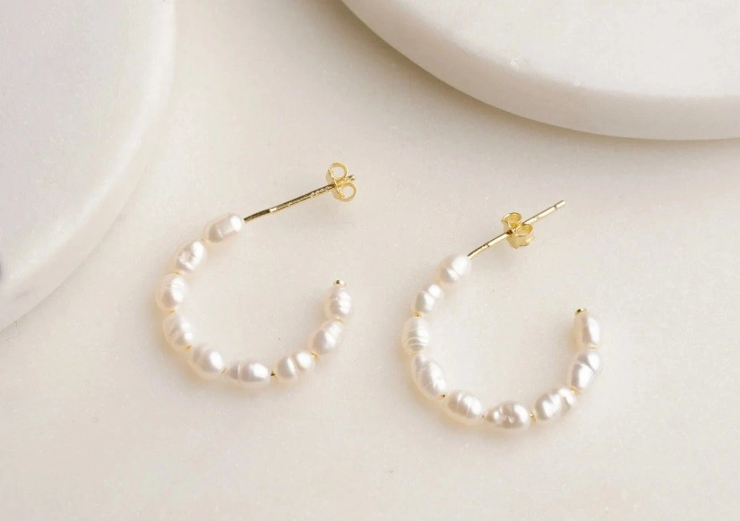 Pearl Hoop Earrings -waterproof, hypoallergenic and tarnish free