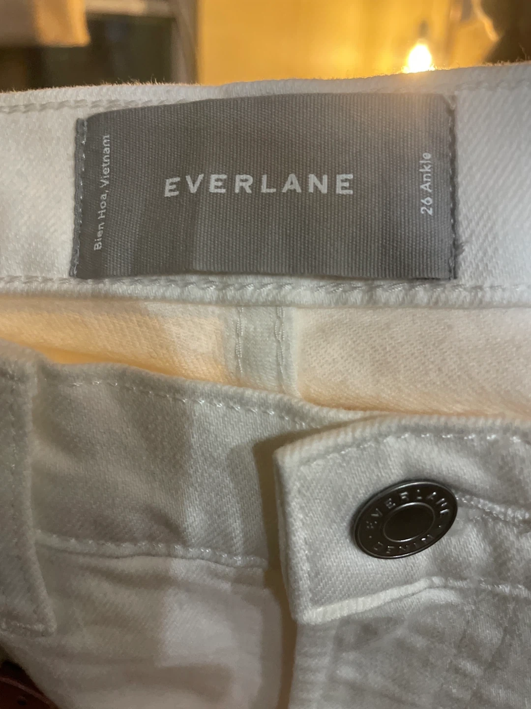 Selling a pair of Everlane straight leg crop jeans in white. They appear to be new but without tags. Perfect for a casual, stylish look. Porch pick up in Joliet near McWethys.