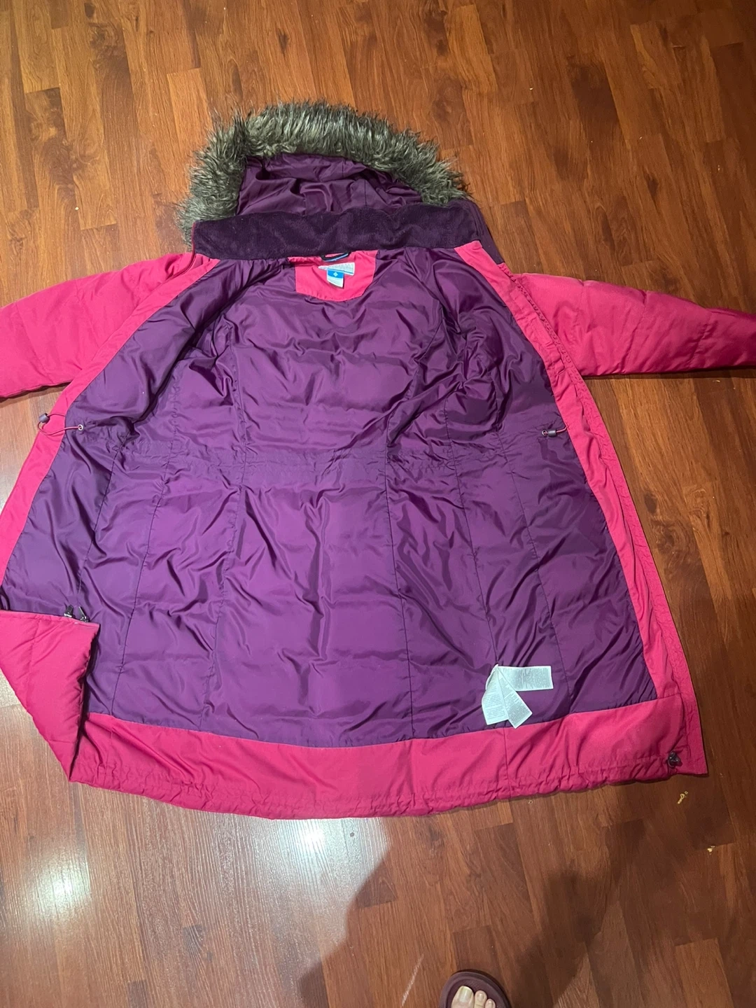 Selling a lovely pink Columbia winter coat! It has a stylish fur hood and is perfect for keeping warm during the colder months. It's in great condition and ready for a new home. Asking $60. Brampton pick