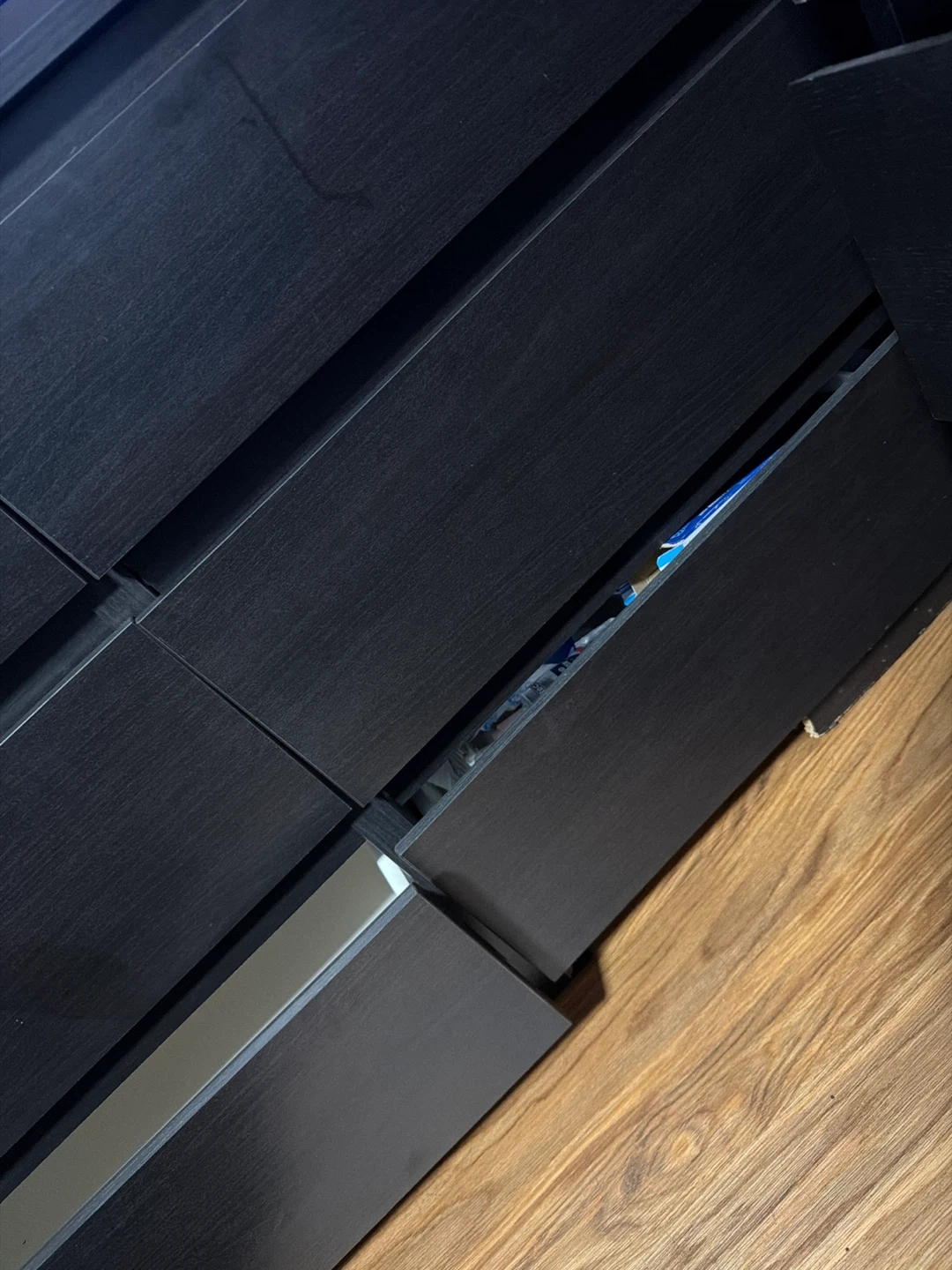Selling a used IKEA Hemnes dresser in black-brown. It's got some wear and tear, especially around the base and edges, as shown in the photos. Still functions well and has lots of storage space!