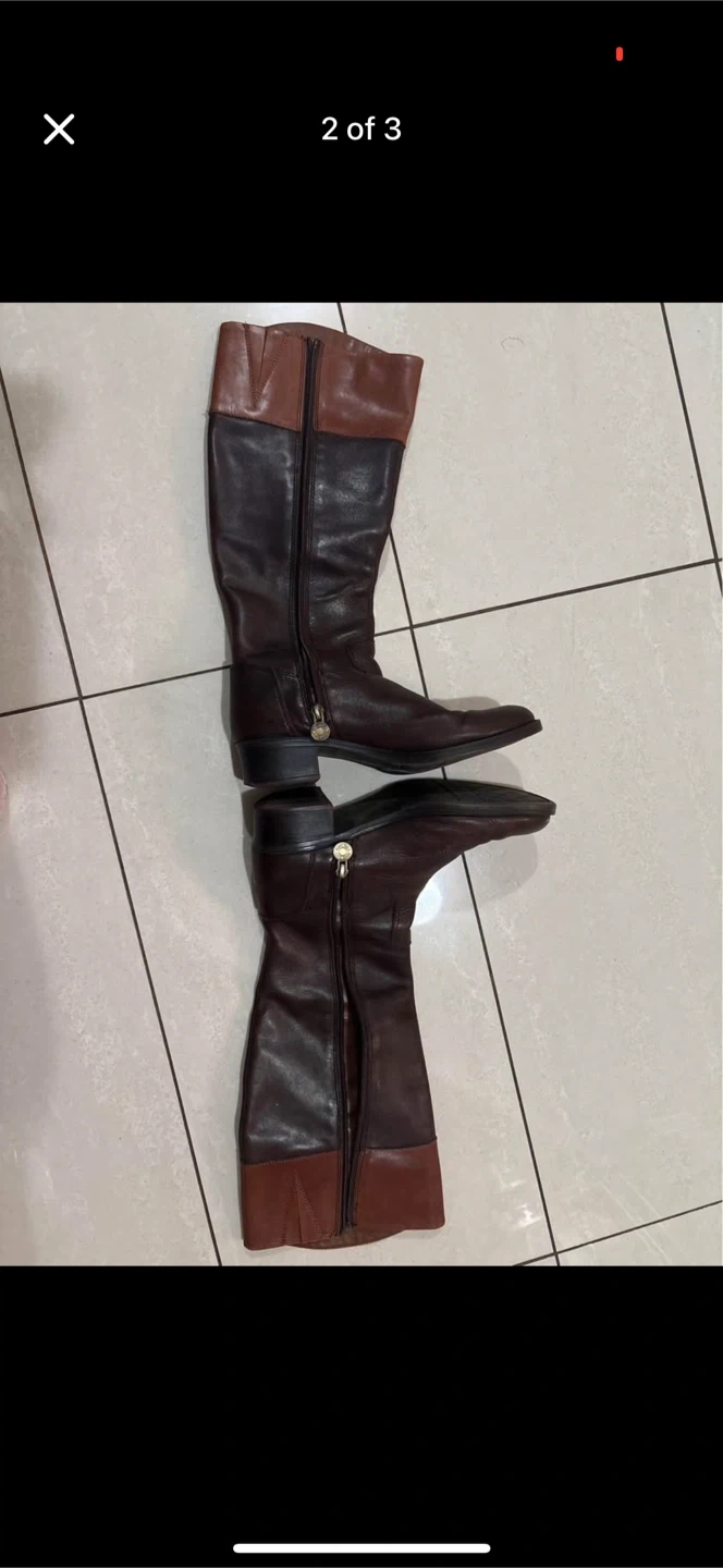 These brown leather knee-high boots are in good condition and ready for a new home! They have a stylish design and are perfect for adding a touch of elegance to any outfit