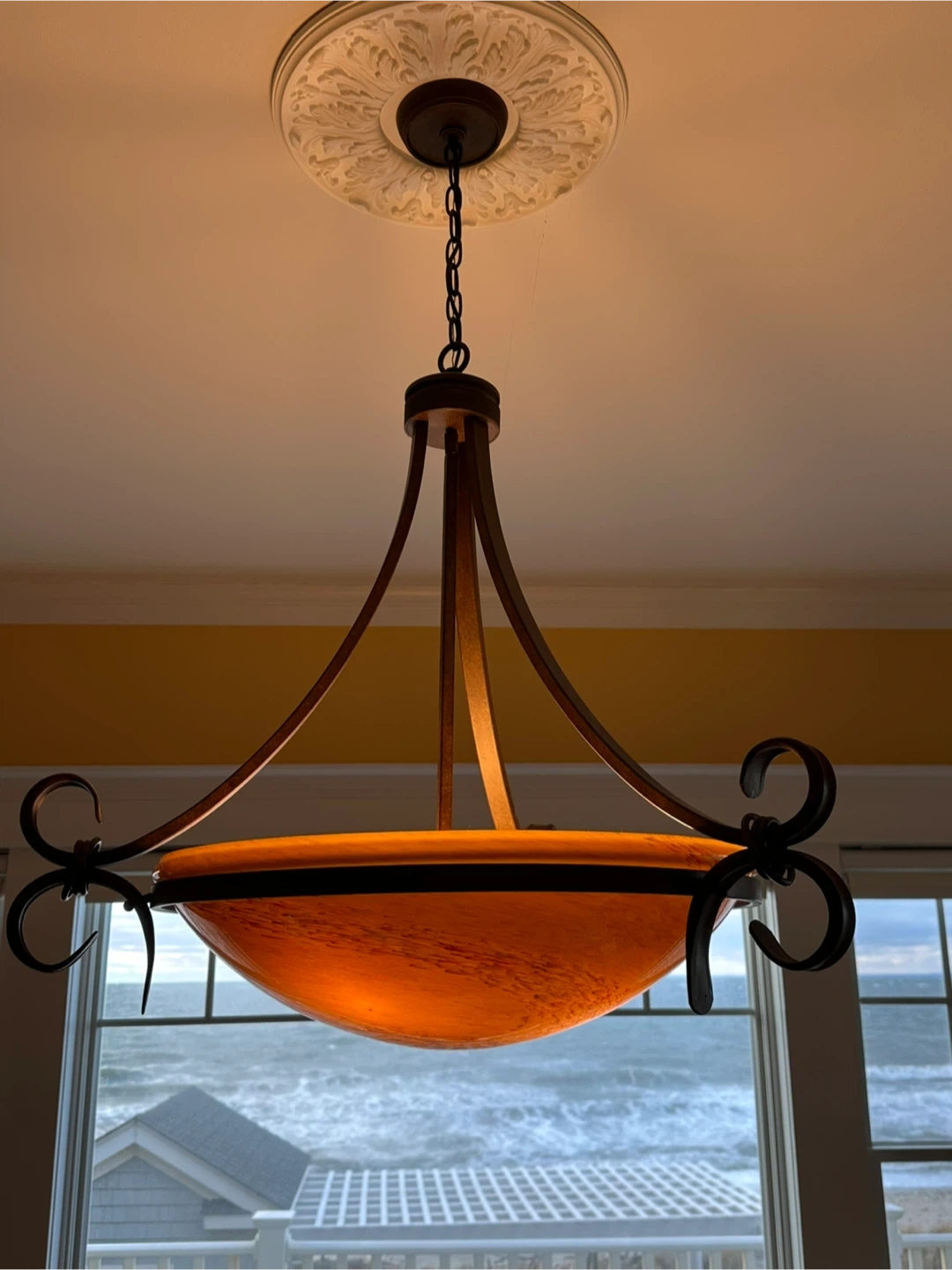 Selling a hanging bowl light fixture. 29” H x 28” W.