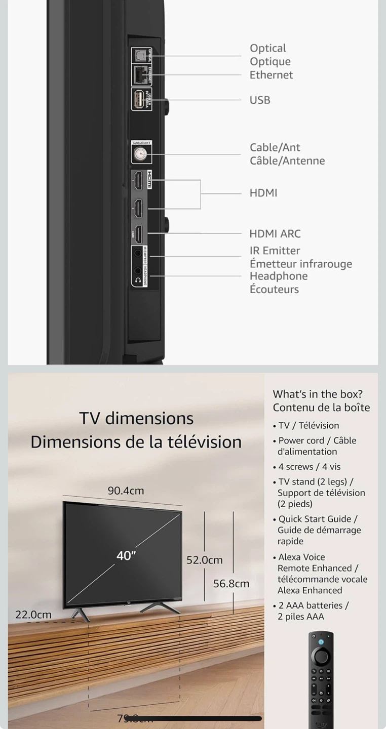 Selling an Amazon Fire TV 2-Series smart TV. It's in great condition and ready for a new home! The TV is 40 inches and has stunning high definition. It also comes with all included components, such as the power cord, TV stand, Alexa Voice Remote Enhanced